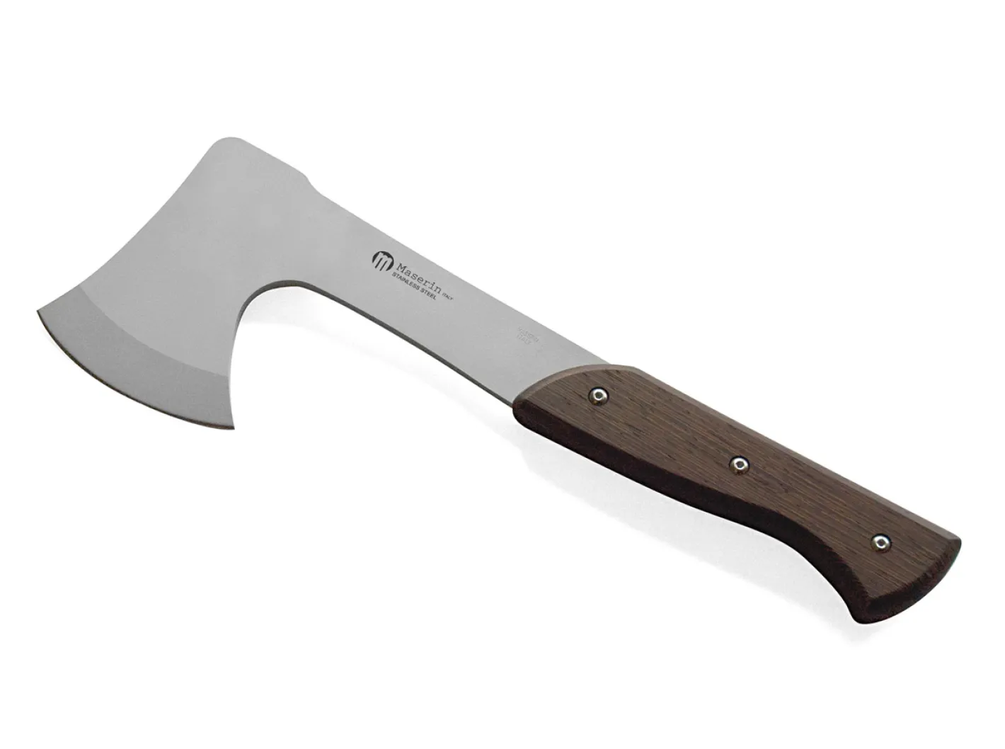 Die Maserin Accetta ist eine kleine und kompakte Axt, hergestellt aus einem Stück Stahl 420. Der klassische Holzgriff verleiht der Axt eine fast schon traditionelle Anmutung. Mit praktischer Lederscheide.