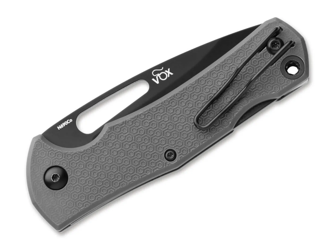 Mit viel Liebe zum Detail hat Jesper Voxnaes das MKM Lov konzipiert und setzt dabei auf eine schnitthaltige N690 Klinge mit großer Daumenöffnung und Back Lock Verriegelung. Der ergonomische Griff aus grauem FRN weist eine feine Textur auf und sorgt damit jederzeit für sicheren Halt. Der umsetzbare Drahtclip (Tip-Up) und die Fangriemenöse erhöhen den Tragekomfort und die Alltagstauglichkeit. Die Orange anodisierte Klingenachsschraube setzt einen dekorativen Akzent.