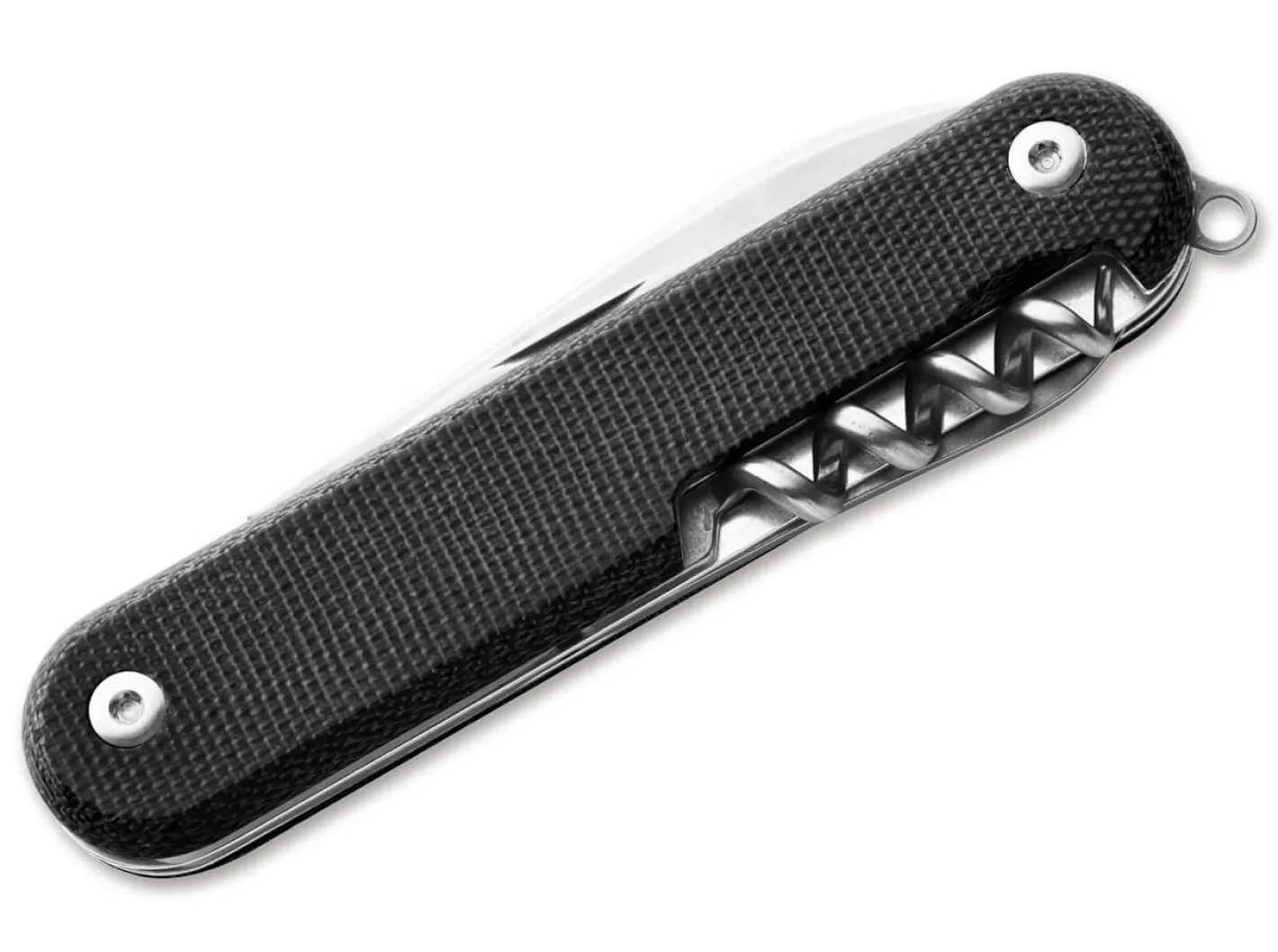 Das moderne Slipjoint Messer ist mit sechs Werkzeugen für die meisten Situationen des Alltags gewappnet. Die Hauptklinge aus hochwertigem MagnaCut öffnet per Nagelhau und wird von einer Entourage aus Korkenzieher, Stechahle, Gabel, Dosenöffner und Kapselheber begleitet. Der rutschfeste Griff ist mit schwarzen Micarta Schalen ausgestattet und verfügt über eine diskrete Fangriemenöse. Dank seiner Vielseitigkeit darf das MKM Malga 6 bei keinem Picknick fehlen.