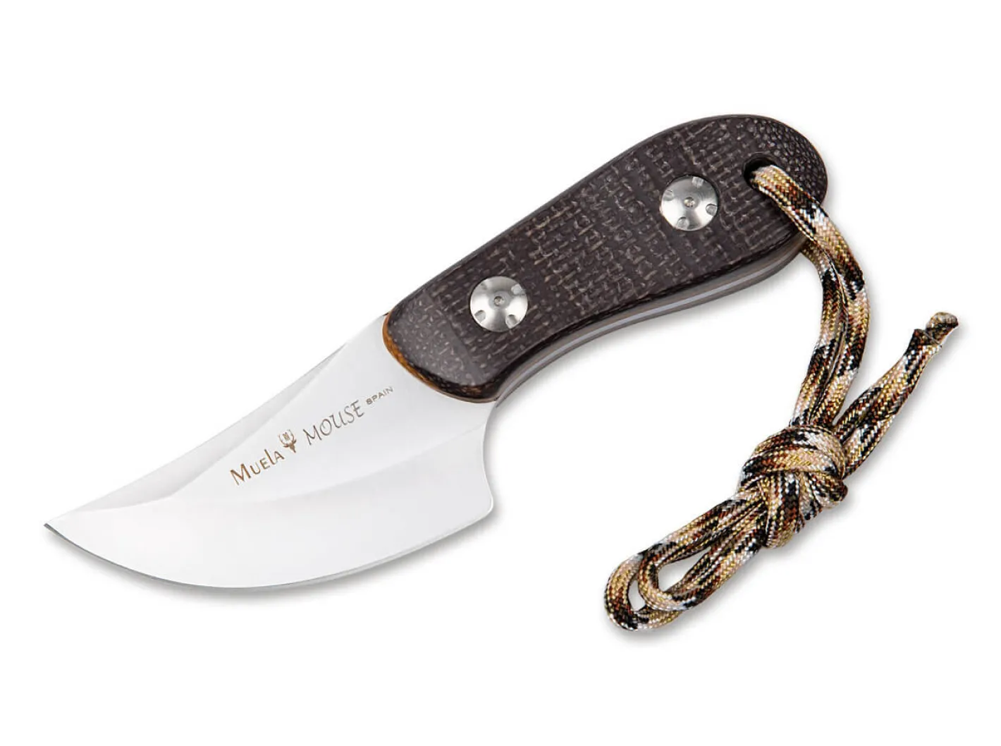 Outdoor-Kraftprotz: Das Muela Mouse 7M fühlt sich bei Jagd und Outdoor besonders wohl und bringt genau dort seine Kernkompetenzen ein. Die Klinge aus 14C28N mit durchgehendem Erl erlaubt kraftvolle bis hin zu feinen Schnitten, während die Micarta Griffschalen sanft in der Hand liegen. Mit Fangriemenöse und passgenauer Lederscheide.