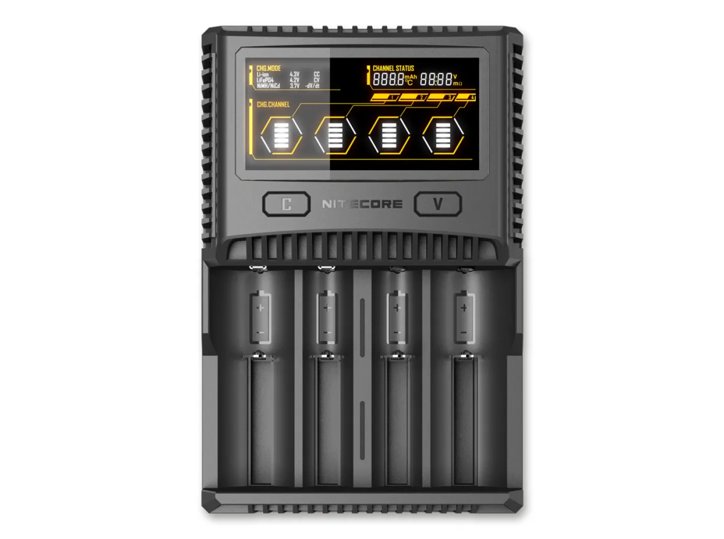 Das Nitecore SC4 ist ein intelligentes 4-Schacht-Ladegerät, welches fast alle Li-Ion Akkutypen, NiMH, NiCd und LiFEPO4 Akkus laden kann. Der SC4 verfügt über ein hochauflösendes LCD-Farbdisplay. Der Ladestrom kann individuell, je nach Akkutyp, eingestellt werden. Für einen Ladeschacht sind maximal 3A, bei allen 4 Schächten zusammen maximal 6A Ladestrom möglich.