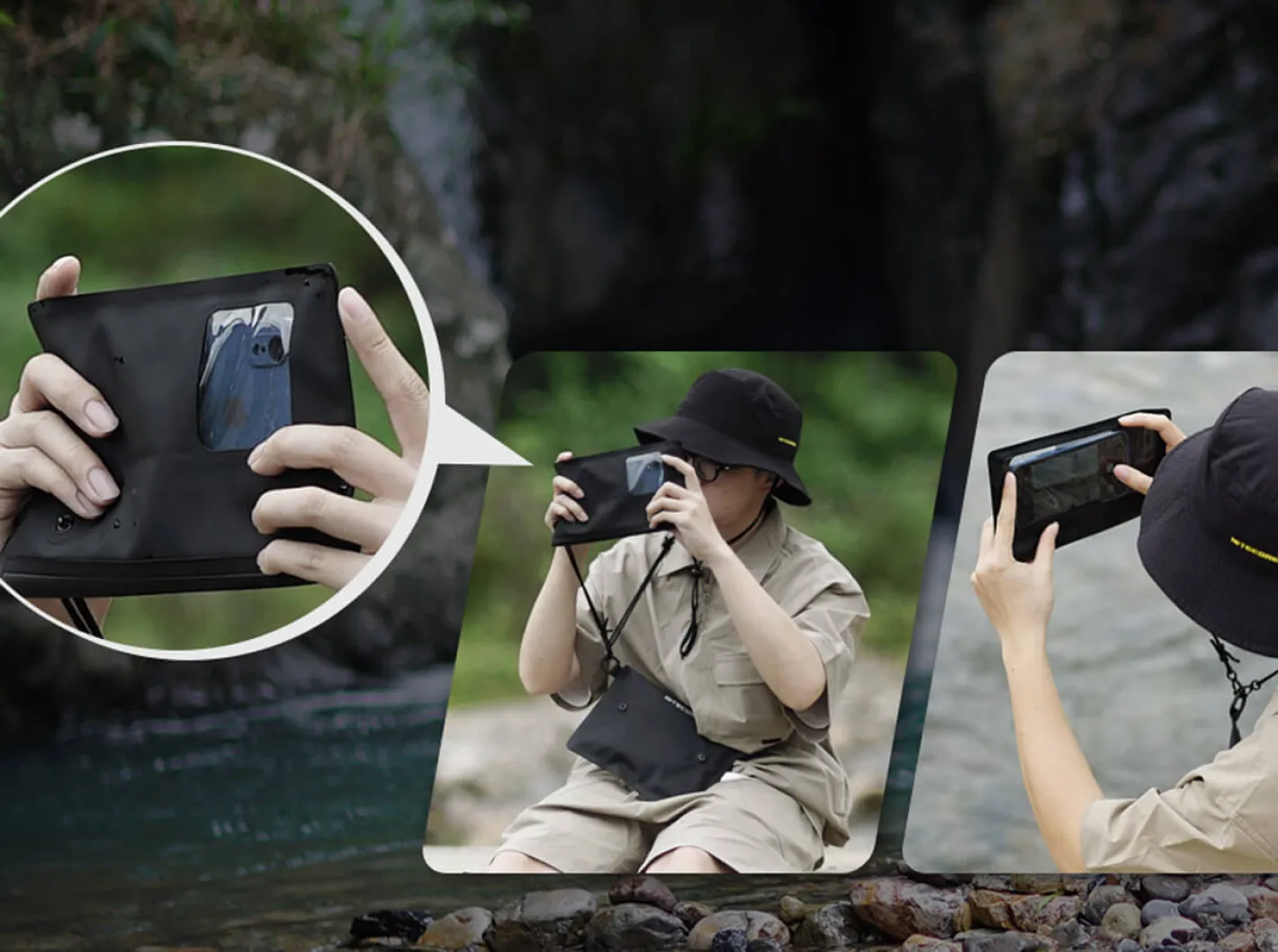 Die zweiteilige Umhängetasche ist der ideale Begleiter für all jene, die es actionreich mögen. Durch die wasserfeste Konstruktion können Smartphones und andere elektronische Kleingeräte vom Wildwasserrafting bis hin zum Camping sicher verstaut werden. Sichtfenster an Vor- und Rückseite geben den perfekten Überblick und erlauben das Erstellen von Fotos und Videos mit dem Handy, ohne es aus der Tasche herauszunehmen. Die Reißverschlüsse sind mit Gummilippen versehen und verhindern ein Eindringen von Wasser. Abmessungen: 23,5 cm x 17 cm.
