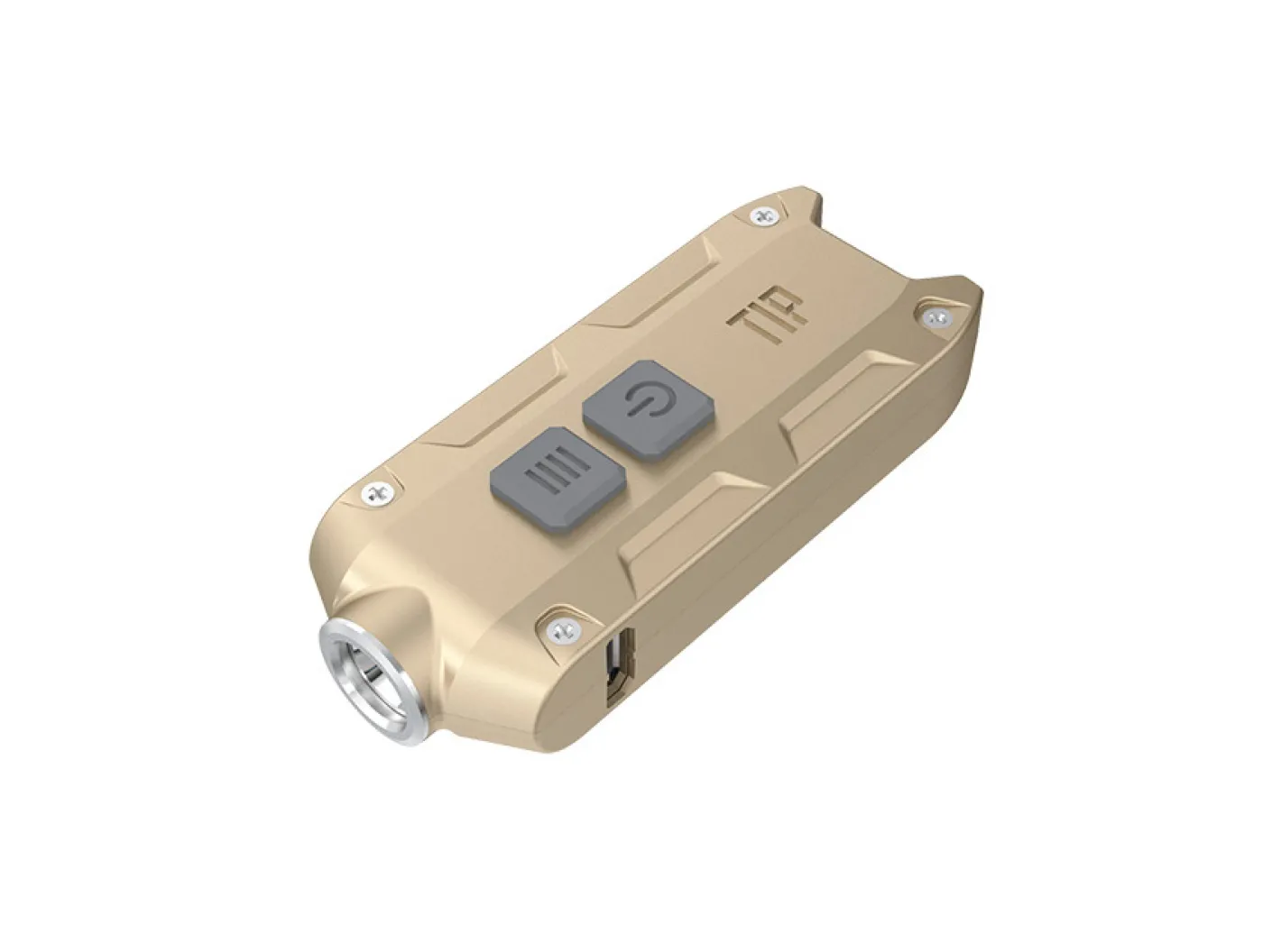 Die neue Version der TIP Schlüsselbundlampe von Nitecore ist ausgestattet mit einer Cree XP-G2-LED mit bis zu 360 Lumen Leuchtkraft und bietet zusätzlich zu den bewährten Eigenschaften einen abnehmbaren Clip, der auch zum Sichern/Abdecken der Schalter verwendet werden kann. Zudem ist die Programmierung einer automatischen Abschaltfunktion möglich. Spritzwassergeschütztes Aluminiumgehäuse mit integriertem Li-Ionen-Akku und USB-Ladefunktion. 2 Schalter mit integrierten Status-LEDs für Direktzugriff auf Turbo, Minimum oder die zuletzt benutzte Lichtstärke. Mit 4 Leuchtstufen (360/150/35/1 Lumen) und ATR-Temperaturregelung. Lieferung mit Schlüsselring und Clip. Größe 61 x 24 x 14 mm. Gew. 21 g.