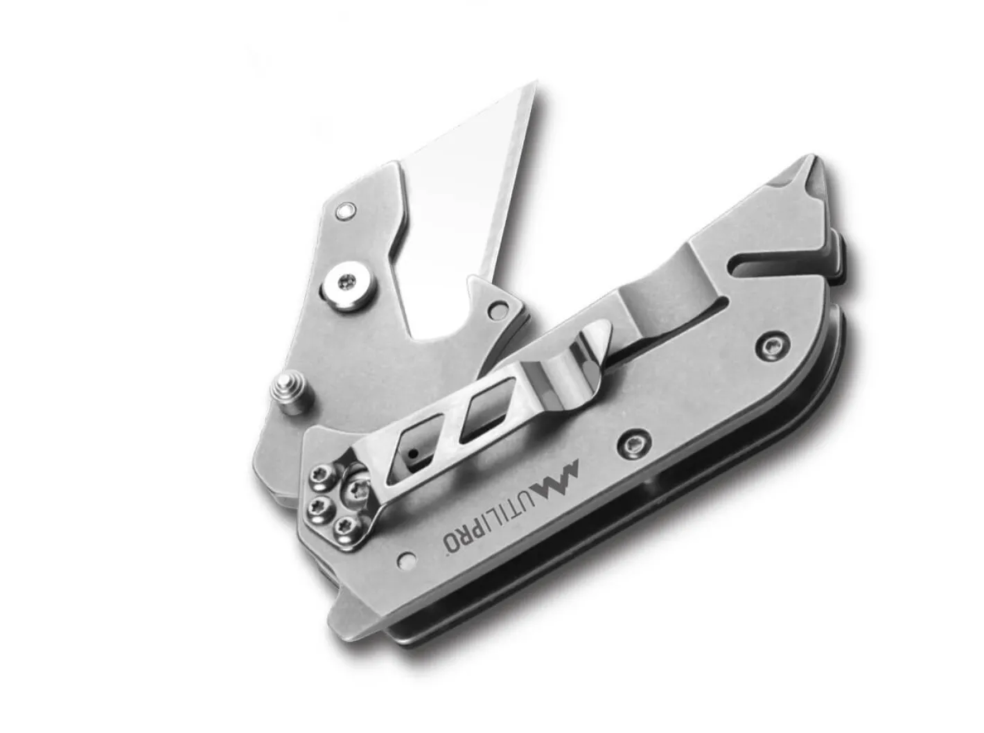 Messer oder Multitool? Das UtiliPro vereint die Vorzüge beider Welten. Das kompakte Messer erinnert im ersten Moment an ein Cuttermesser, jedoch ist hier die Wechselklinge einklappbar. Per Daumenpin wird das Taschenmesser geöffnet, während der robuste Edelstahl Frame Lock den Klingenhalter zuverlässig hält. Der schwarze Griff aus GRN liegt seiner Texturierung stets sicher in der Hand. Zusätzliche Flexibilität beweist das UtiliPro mit dem integrierten Gurtschneider, Kapselheber, Schraubendreher (Schlitz + Kreuzschlitz) sowie einen Tip-Down Clip.
