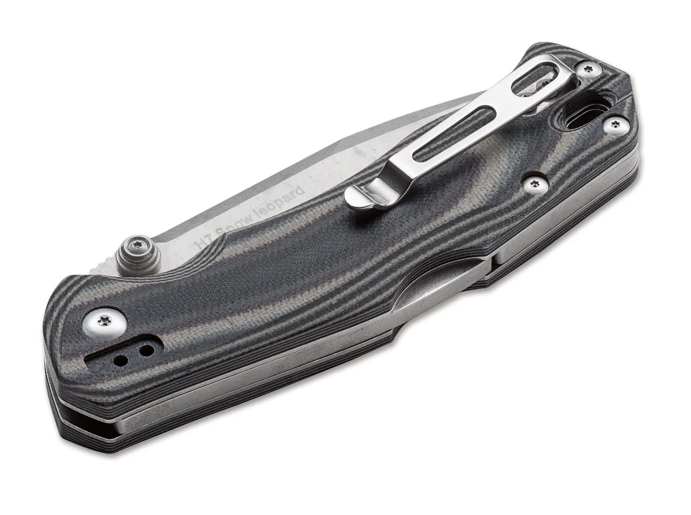 Die Beschalung aus mehrfarbigem G10 verleiht dem Snow Leopard seine besondere Anmutung. Die Klinge verriegelt per Backlock. Als Klingenstahl kommt der stickstofflegierte Sandvik 14C28N zum Einsatz. Mit dreifach umsetzbarem Clip.
