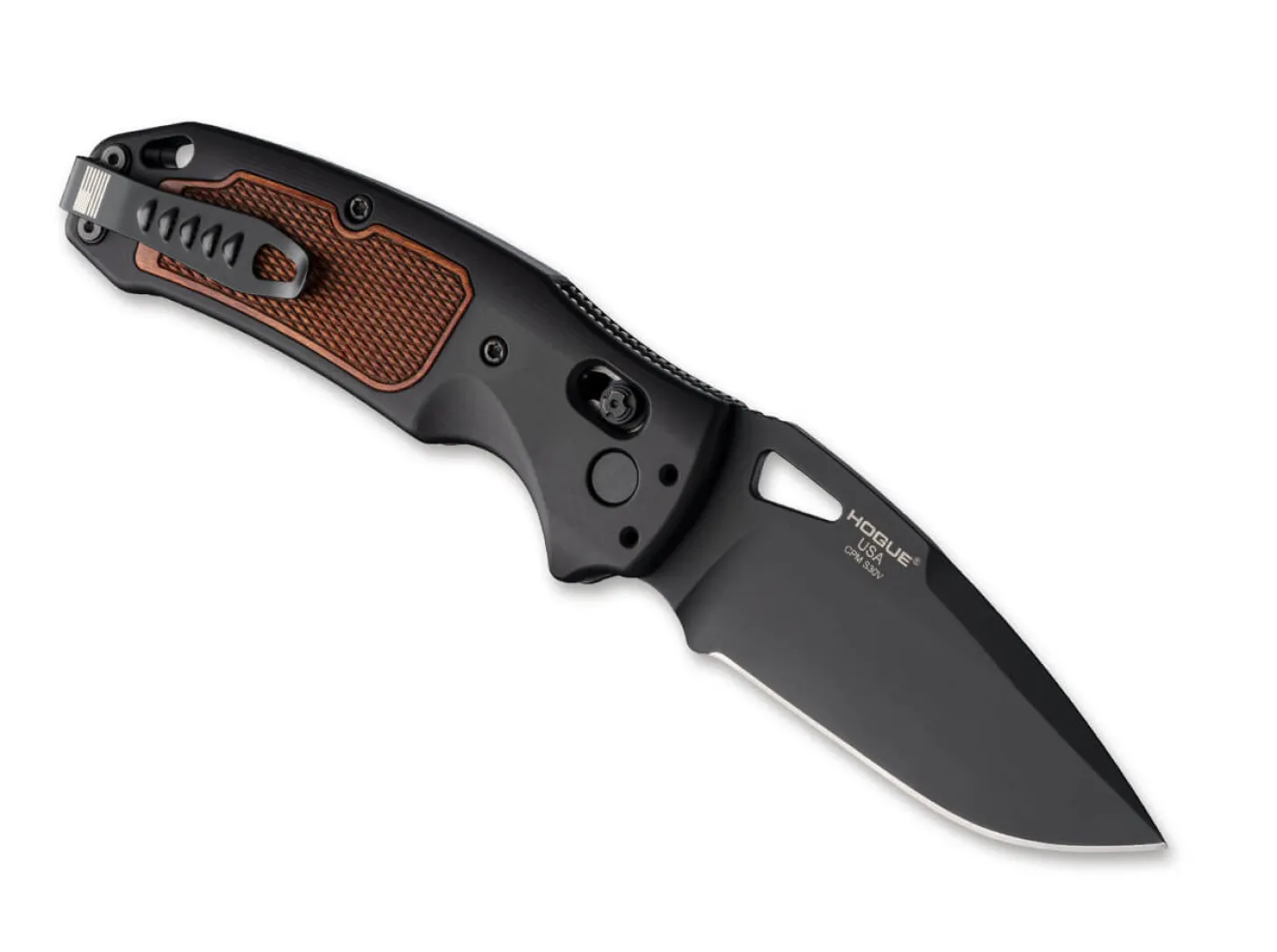 In Zusammenarbeit mit dem US-amerikanischen Messerspezialisten Hogue präsentiert SIG das K320 AXG Classic als taktisches Einsatzmesser in mit taktisch-klassischem Gewand. Die Droppoint-Klinge aus pulvermetallurgischem CPM-S-30V ist mit einer Fehlschärfe sowie einem Black Cerakote Finish versehen und wird per Daumenöffnung in Betrieb genommen. Zur Sicherung der Klinge kommt der robuste ABLE Lock zum Einsatz, der diese durch ein Zurückschieben des seitlichen Knopfes wieder löst. Herausragende Haptik bietet der ergonomische Aluminiumgriff, der mit rutschfesten Einlagen aus edlem Walnussholz versehen ist. Mit Fangriemenöse und vierfach umsetzbarem Clip.