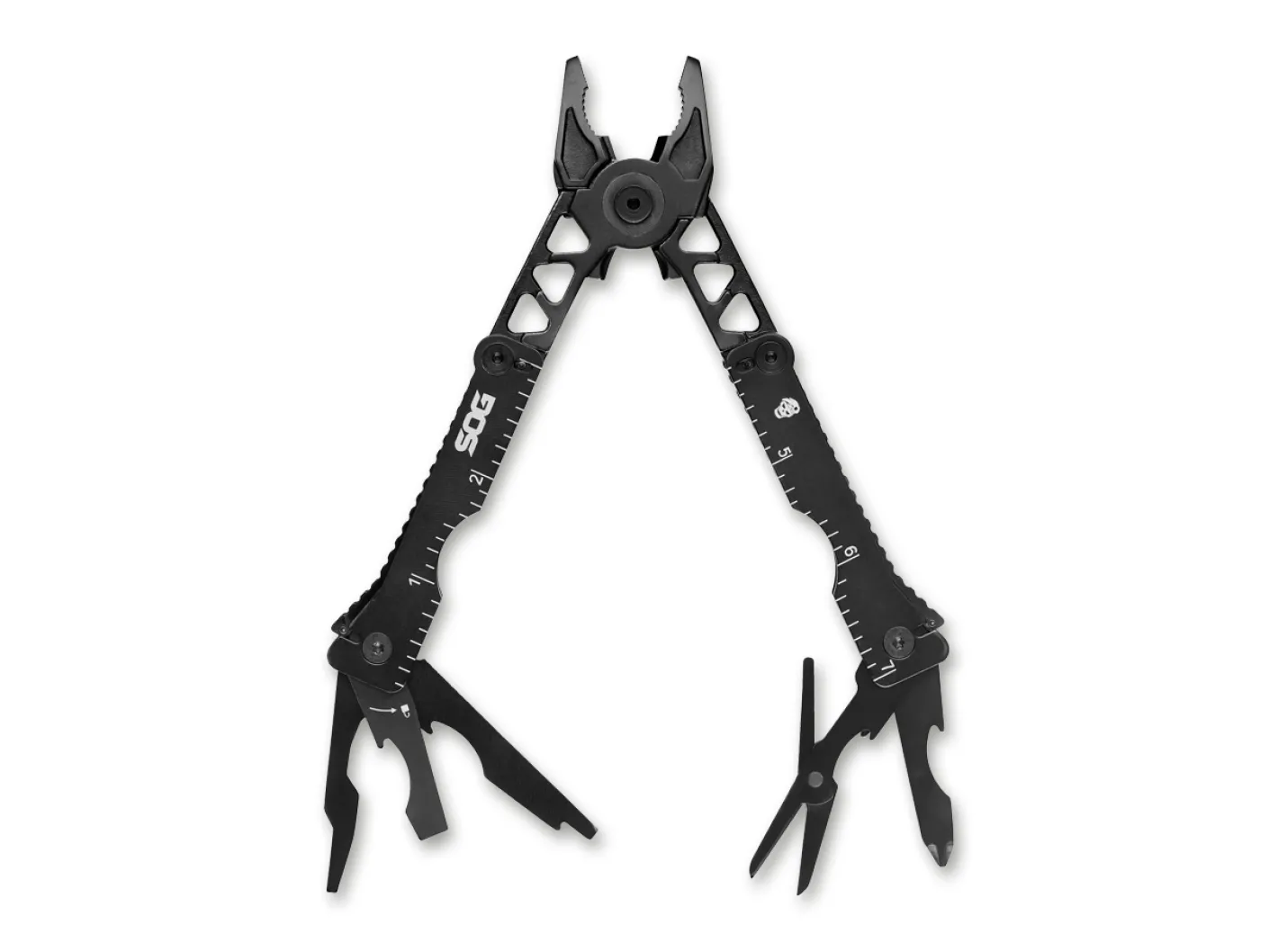 Das schwarze Sync II Traveler von SOG bietet die am häufigsten gebrauchten Werkzeuge für Alltag, Sport und Beruf. Die Griffe bestehen aus Edelstahl, die Werkzeuge werden aus 5Cr15MoV gefertigt. Die Traveler-Ausführung trägt statt der Messerklinge eine stumpfe Multifunktionsklinge mit kleinem Schlitzschraubendreher und Kapselheber. Weitere Werkzeuge: Kombizange, Drahtschneider, Crimper, Kreuzschraubendreher, Flaschenöffner, Schere, kleiner und mittlerer Schlitzschraubendreher, dreiseitige Feile, Lineal.Die Vielseitigkeit eines Multitools ist nutzlos, wenn das Tool im Bedarfsfall nicht greifbar ist. Das SOG Sync besitzt eine Trageplatte, die einfach als Gürtelschnalle getragen werden kann oder an den Rucksack oder Stiefel geclippt wird. Es kann leicht mit einer Hand von der Basisplatte genommen werden, sitzt aber selbst bei sportlicher Bestätigung sicher verriegelt an Ort und Stelle.Passend für Gürtelbreiten bis maximal 4,4 Zentimeter.