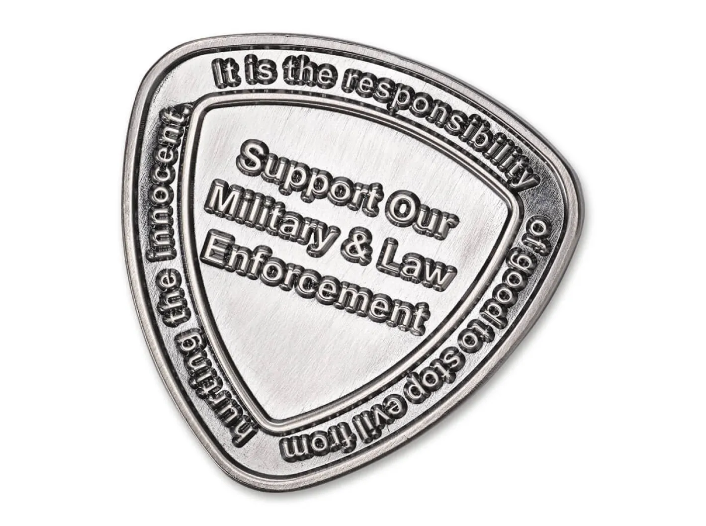Diese antik vernickelte Münze wird in einer einzigartigen Reuleaux-Dreiecksform geprägt und trägt stolz das Spyderco-Logo und die Jahreszahl 2021. Damit bringt Spyderco seine Unterstützung für den Erhalt des Guten zum Ausdruck und ehrt damit inbesondere die Hüter des Gesetzes.