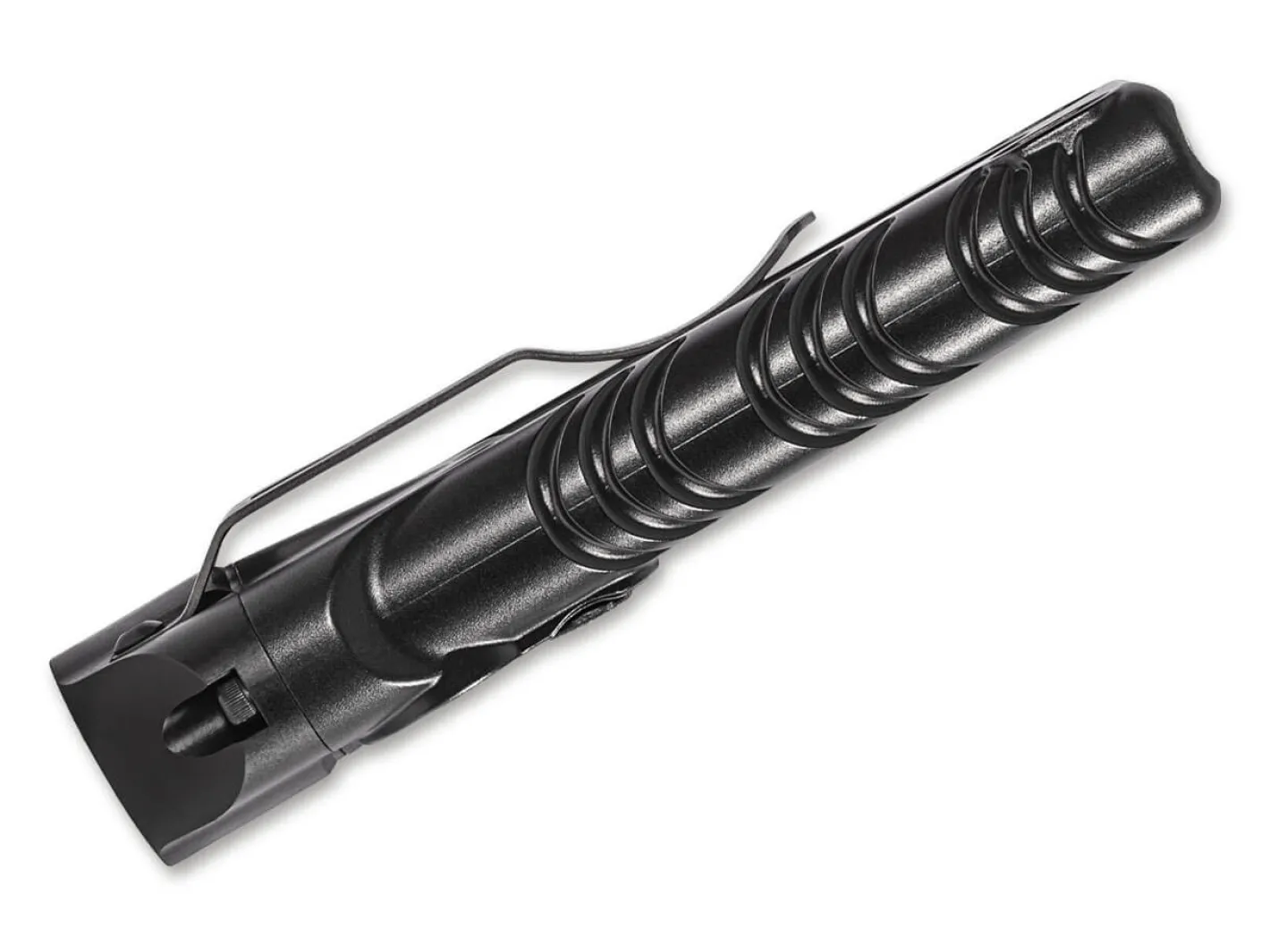 Die handliche SureFire Stiletto Pro ist eine schlanke taktische Taschenlampe mit drei verschiedenen Leuchtstufen (1000/300/25 Lumen) und einer maximalen Reichweite von ca. 142 Metern. Der von SureFire entwickelte MaxVision Beam Reflektor erzeugt einen gleichmäßigen, optimierten Lichtstrahl. Über die Schalter auf der Oberseite des nach IPX7 wasserdichten Gehäuses werden die verschiedenen Funktionen aktiviert. Der praktische Micro-USB-Anschluss ermöglicht das einfache Aufladen des integrierten Akkus, sodass kein zusätzliches Ladegerät erforderlich ist. Zudem verschafft die in das Gehäuse integrierte Kapazitätsanzeige Klarheit über den Ladezustand. Die SureFire Stiletto Pro kann bei Maximalleistung ca. 60 Minuten lang betrieben werden. Mit umsetzbarem, widerstandsfähigem Clip.