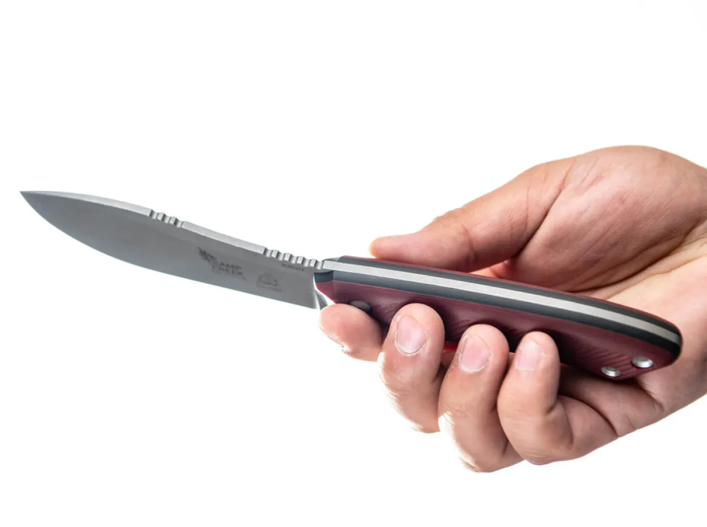 Aufbauend auf der Ur-Variante des TOPS Camp Creek verpasst Messerdesigner Leo Espinoza diesem Jagdmesser einen verbreiterten Griff aus feuerrotem G10 und eine etwas bauchigere Klinge aus pulvermetallurgischem CPM-S-35VN für das perfekte Häuten des erlegten Wildes. Das in Vollerl-Bauweise konstruierte Campingmesser ist mit zwei Hohlnieten am Griff für die Befestigung eines Lanyards versehen und wird mit einer hochwertigen Lederscheide geliefert.