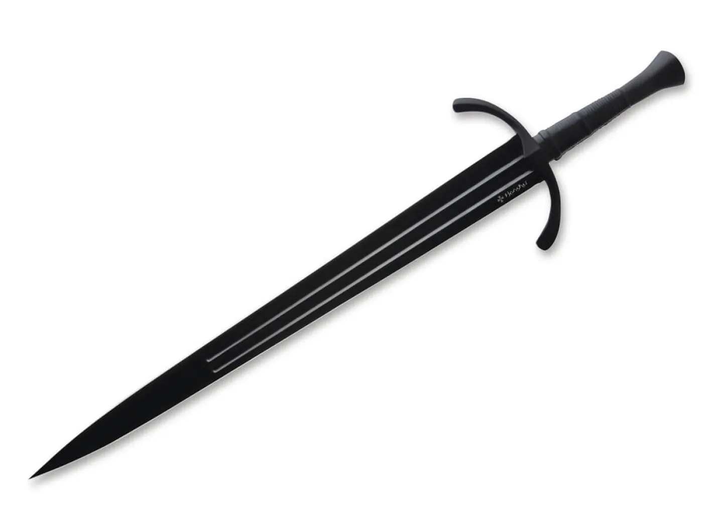 Als Teil der Honshu Midnight Forge Serie wurde dieses außergwöhnliche Einhandschwert unter Verwendung eines bewährten Schwertdesigns mit modernster Technik gefertigt, um die perfekte Balance zwischen Klinge und Griff zu bieten. Die Klinge besteht aus hochfestem 1065 Kohlenstoffstahl und ist mit einem schwarzen Finish versehen. Der Holzgriff ist mit schwarzem Leder umwickelt und der kräftige Knauf besteht aus schwarzem Stahl. Das Breitschwert gleitet geschmeidig in eine schwarze Lederscheide mit Metallverzierungen.