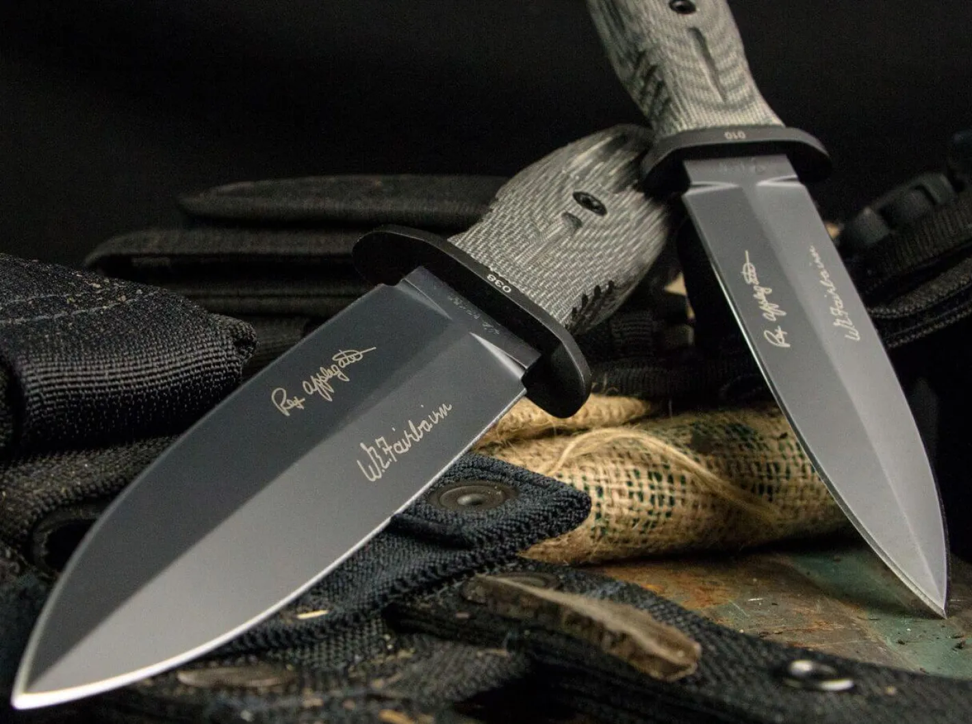 In der ganzen Vielfalt der Kampfmesser sind komplett geschwärzte Versionen quasi ein Muss. Nicht nur für militärische Operationen, sondern auch wegen der besonderen Ausstrahlung eines solchen Dolches und wegen des zusätzlichen Korrosionsschutzes, den die Beschichtung gewährleistet, sind die schwarz gehaltenen Versionen überaus populär. Und so war es quasi unsere Pflicht, auch die überarbeiteten Modelle A-F 4.5 und A-F 5.5 in einer solchen Variante aufzunehmen. Kaum ein anderer Messermacher hat das Feld der taktischen Einsatzmesser so sehr geprägt wie William H. „Bill“ Harsey, seine Entwürfe haben ihm einen ausgezeichneten Ruf in der Messerwelt eingebracht. Die von ihm entworfene Modifikation des legendären Böker Applegate-Fairbairn verbindet das von vielen Eliteeinheiten im Einsatz genutze Messer mit modernen Elementen. Die größere Klingenbreite und die günstigere Geometrie der beidseitig geschliffenen Klinge aus N690 mit schwarzer PVD-Beschichtung verbessern die Schneideigenschaften, während die Klingenlänge einen optimalen Kompromiss aus Führigkeit und Nutzwert bietet. Der am Griffende hervorstehende Klingenerl kann unter anderem als Glasbrecher eingesetzt werden. Die CNC-gefrästen Griffschalen aus schwarzem Micarta sind äußerst belastbar, angenehm strukturiert und bieten selbst bei Feuchtigkeit hervorragenden Grip. Lieferung mit hochwertiger schwarzer Nylonscheide von SpecOps.