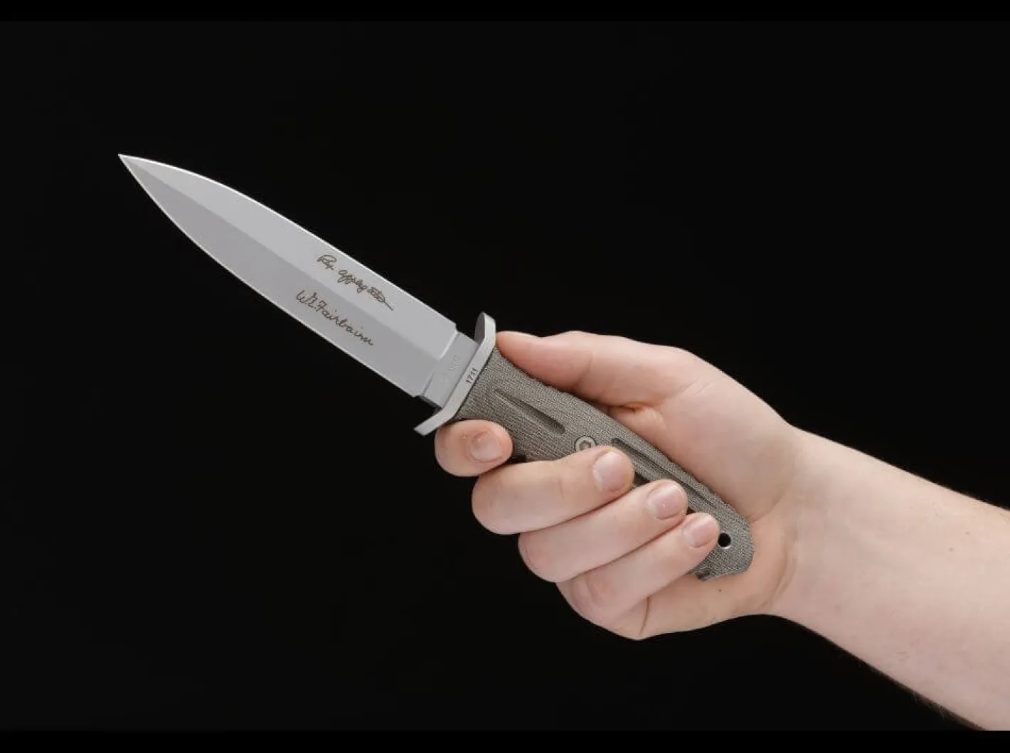 Kaum ein anderer Messermacher hat das Feld der taktischen Einsatzmesser so sehr geprägt wie William H. „Bill“ Harsey, seine Entwürfe haben ihm einen ausgezeichneten Ruf in der Messerwelt eingebracht. Die von ihm entworfene Modifikation des legendären Böker Applegate-Fairbairn verbindet das von vielen Eliteeinheiten im Einsatz genutze Messer mit modernen Elementen. Die größere Klingenbreite und die günstigere Geometrie der beidseitig geschliffenen Klinge aus 440C verbessern die Schneideigenschaften, während die Klingenlänge einen optimalen Kompromiss aus Führigkeit und Nutzwert bietet. Der am Griffende hervorstehende Klingenerl kann unter anderem als Glasbrecher eingesetzt werden. Die CNC-gefrästen Griffschalen aus Green Canvas-Micarta sind äußerst belastbar, angenehm strukturiert und bieten selbst bei Feuchtigkeit hervorragenden Grip. Die Auslieferung erfolgt mit einer speziell konzipierten schwarzen Scheide von Spec-Ops Brand aus den USA. Die sehr hochwertige Scheide ist multifunktional zu befestigen und verfügt über eine geräumige Vortasche.