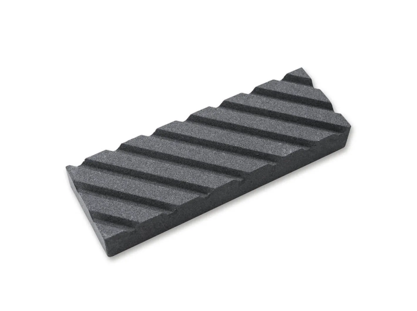 Abrichtstein zum Planen/Abrichten von Schleifsteinen mit Querrillen zur Aufnahme von Abrieb. Sowohl Natur- als auch synthetische Schleifsteine werden beim Schleifen mit der Zeit auf der Nutzfläche hohl, es entsteht eine Wölbung nach innen. Der Abrichtstein wird verwendet um ein plane/gerade Oberfläche herzustellen bzw. zu erhalten. Als zweite Produktanwendung lässt sich mit dem Abrichtstein auch Schleifschlamm von einem bestehenden Schleifstein aufreiben. Beim Schleifen mit Schleifschlamm wird mit sogenanntem „rollendem Korn“ geschliffen. Mit Schleifschlamm kann die Schärfe bei gleicher Körnung schneller und feiner erzeugt werden als mit der bloßen Schleifsteinoberfläche. Für welche Schleifsteine eignet sich das Produkt? Geeignet für japanische Wassersteine jeder Körnung sowie weich gebundene Natursteine (z.B. Belgischer Brocken/Coticule). Nicht geeignet für Arkansas-Steine, künstliche Keramik-Steine und Diamant-Schleifplatten. Tränken Sie Schleifstein und Abrichtstein mit ausreichend Wasser. Reiben Sie Schleif- und Abrichtstein mit Kreisbewegungen gegeneinander bis das gewünschte Ergebnis erreicht ist. Halten Sie beide Steine während des gesamten Vorgangs nass. Maße Nutzfläche: 180 x 60 mm. Höhe 25 mm.