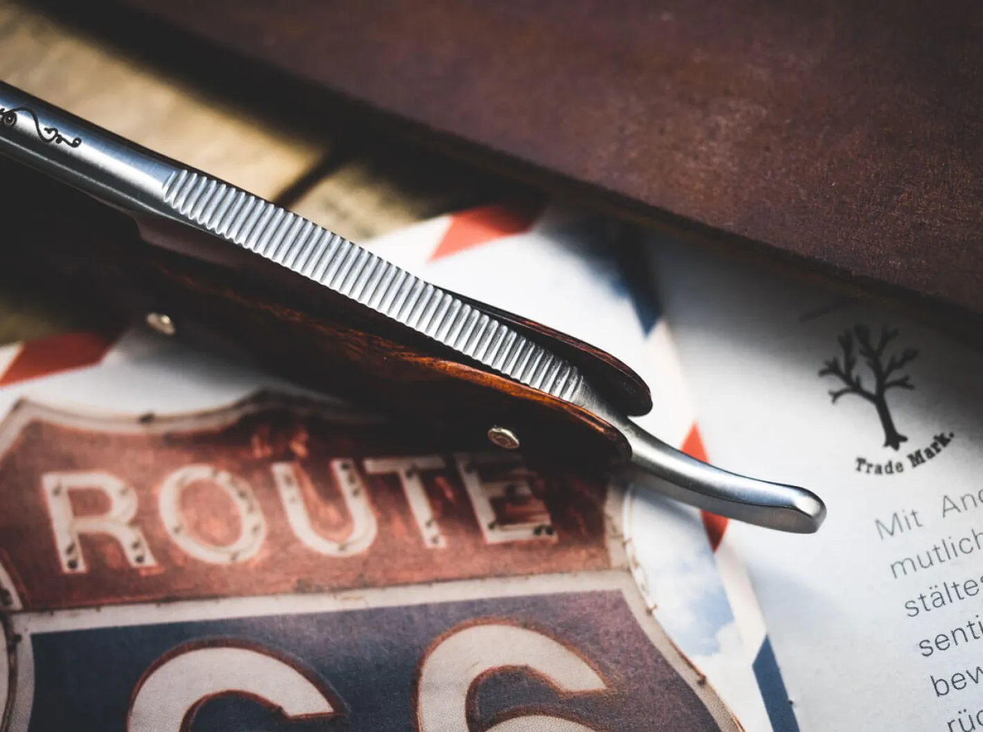 Als Hommage an den „Guardian Angel“ der Route 66 präsentiert Böker das streng auf 99 Exemplare limitierte Böker Angel Delgadillo Route 66. Der Barbier aus dem verschlafenen Örtchen Seligman im US-Bundestaat Arizona gilt als Kultikone an der Mother Road, wie die Route 66 auch genannt wird, und denkt auch mit über 90 Jahren noch lange nicht ans Aufhören. Was läge da näher als dem lebensfrohen und ewig junggebliebenen Barbier ein eigenes Rasiermesser zu widmen?Das imposante Böker Angel Delgadillo Route 66 beeindruckt mit seiner 7/8 Zoll breiten Klinge aus Kohlenstoffstahl, die durch ihre Größe und den Extrahohlschliff besonders sanft über die Haut gleitet. Als besonderes Highlight wurde hier der von Intarsien eingerahmte Schriftzug „Angel’s Barber Shop“ auf den Klingenrücken gelasert, während die beidseitige Serrierung am Klingengang und das edle Satin Finish die Optik der Rundkopfklinge vortrefflich abrunden.Sandig braune Landschaften sind typisch für den Verlauf Route 66, so dass für das Heft nur das vor allem in Arizona heimische Wüsteneisenholz in Frage kommen konnte. Freiheit und der American Way of Life finden im Route 66 Logo auf dem Griff in nostalgischer Weise den passenden Ausdruck. Durch ein besonderes Verfahren konnte erstmalig bei einem Böker Rasiermesser eine derartige Laserung auf Holz realisiert werden. Das Zwischenstück besteht aus schwarzem Micarta, während die hochwertige Anmutung des Griffs durch drei Nieten aus Neusilber abgerundet wird. Mit authentischem Böker Stempel im Klingengang, Echtheitszertifikat und historischer Verpackung. Handgefertigt in der Böker Messer-Manufaktur Solingen.