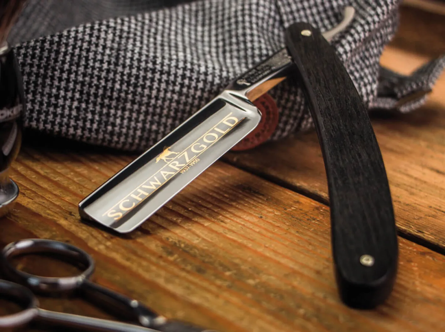 Mit unserem eleganten Rasiermesser Schwarzgold mit schwarzer Ruthenium-Beschichtung auf dem Untergrund einer vollständigen 24-karätigen Vergoldung möchten wir an die außergewöhnliche Rennstute Schwarzgold erinnern.Schwarzgold erblickte im Jahre 1937 auf dem Gestüt Schlenderhahn als Tochter des Deckhengstes Alchimist und der Zuchtstute Schwarzliesel die Welt. Schwarzgold war in jeder Hinsicht ein Ausnahmepferd. Von ihren zeitgenössischen Sportliebhabern wurde das Englische Vollblut als Galoppmaschine, Wunderstute und Überpferd bezeichnet. Den Preis der Diana gewann sie 1940 mit 6 Längen, das deutsche Derby im selben Jahr sogar mit sagenhaften 10 Längen Vorsprung. Das klassische Kissaszony-Rennen wurde im Folgejahr nach ihr benannt.Trotz dieser souveränen und ungekannten Überlegenheit geht man davon aus, dass Schwarzgold niemals voll ausgeritten wurde, also tatsächlich immer unter ihren tatsächlichen Möglichkeiten galoppierte. Der Grund hierfür und ein weiteres Faszinosum, das die Legende begründete, war der schwierige Charakter der Stute. Ihr Trainer Georg Arnull verbot jeglichen sonst üblichen Einsatz der Peitsche beim Training sowie beim Rennen. Alles, was Schwarzgold lief, tat sie also freiwillig. Hinzu kam, dass Schwarzgold nur auf Sand eingesetzt werden konnte, da Sie auf Rasen unmöglich zu kontrollieren war.Über allen Siegen von Schwarzgold schwebte der Schatten des NS-Regimes. Waldemar von Oppenheim, der Besitzer des Gestütes Schlenderhahn und damit der Besitzer von Schwarzgold wurde kurz nach den Siegen zwangsenteignet. Eine internationale Karriere von Schwarzgold war damit vereitelt. Als Zuchtstute brachte Schwarzgold zwei Fohlen zur Welt. Eines dieser beiden Fohlen – Schwarzblaurot – setzte die Schwarzgold-Linie fort, in der sich bis heute noch zahlreiche Siegerpferde finden.Um der Eleganz und Souveränität der Stute in dem ihr gewidmeten Messer kompromisslos gerecht zu werden, mussten wir uns einiges überlegen. Schließlich kamen wir zu der Lösung, die extrahohl und mit Wall geschliffene Klinge im ersten Schritt vollständig mit 24-karätigem Gold zu beschichten. Nur auf diesem Untergrund haftet die im Negativ-Verfahren aufgetragene Ruthenium-Beschichtung optimal und erhält ihren unvergleichlichen anthrazitfarbenen und dabei seidigen Glanz.Ruthenium ist ein chemisches Element mit dem Elementsymbol Ru und der Ordnungszahl 44. Es ist ein ausgesprochen hartes Platinmetall, das nur in sehr geringem Maße verwendet wird. Es kongruiert daher mit dem Ausnahmecharakter der Namensgeberin des Rasiermessers. Ebenso konsequent edel ist das verwendete Griffmaterial. Das ausgesuchte und sprichwörtlich schwarze Holz nimmt die reizvolle Farbkombination der Klinge auf und ist der herausragenden Qualität des gesamten Messers würdig. Entgegen der Katalogangabe handelt es sich dabei um heimisches Mooreichenholz. Inklusive Echtheitszertifikat und Präsentationsdisplay.