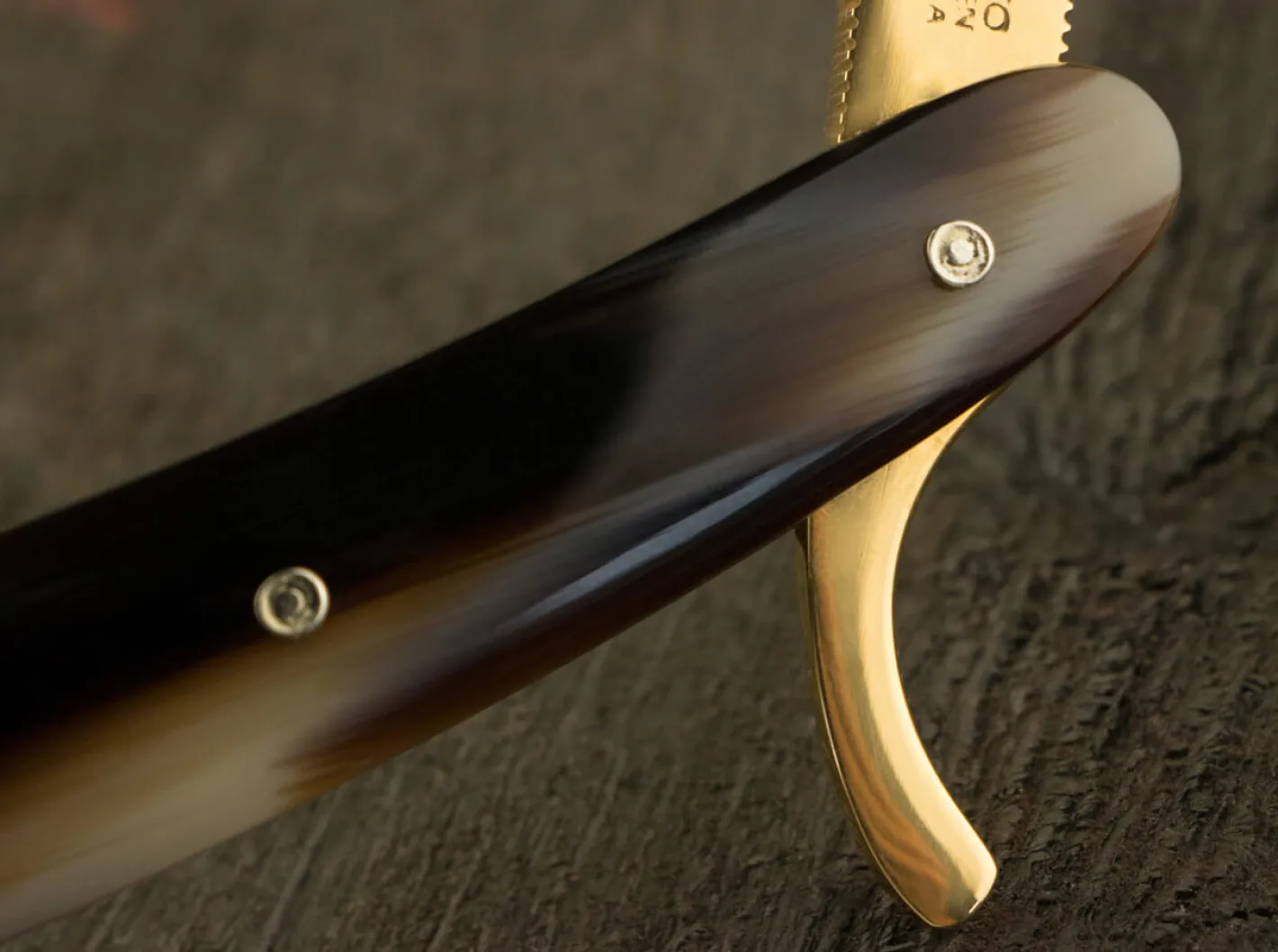 Unweit vom Firmensitz der Böker Manufaktur in Solingen befindet sich mit Schloss Burg an der Wupper das Wahrzeichen des Bergischen Landes. Sie ist zugleich eine der größten Burgen Westdeutschlands und die größte rekonstruierte Burganlage in Nordrhein-Westfalen. Die ruhmreiche Geschichte von Schloss Burg ist untrennbar mit dem Herzogtum Berg und den Grafen von Berg (Haus Berg 1068-1225) verbunden. Dies haben wir zum Anlass genommen, um den drei Grafen von Berg eine Rasiermesserserie zu widmen, welche Teile des Lebens der drei Grafen symbolisiert und mit beeindruckenden Verzierungen aus 24 Karat Gold an die beträchtlichen Besitztümer und den Machteinfluss der Grafen erinnert.Der letzte Graf von Berg, Engelbert II., wurde auch Engelbert I., Erzbischof von Köln genannt. Mit seiner Ermordung ging Berg an das Haus Limburg über. Dieses prunkvolle Rasiermesser in 7/8 Zoll zeigt Engelbert als Erzbischof von Köln. Der Gradkopf dieser auf Klang ausgeschliffenen Klinge aus bestem Solinger Rasiermesserstahl und der geschwungene Klingenrücken in Kombination mit einem Heft aus feinstem Horn dokumentieren höchste Eleganz und einzigartige Qualität. Die Klinge wird extrahohl mit Wall geschliffen. Inklusive Echtheitszertifikat und edlem Präsentationsdisplay mit individueller Seriennummer.