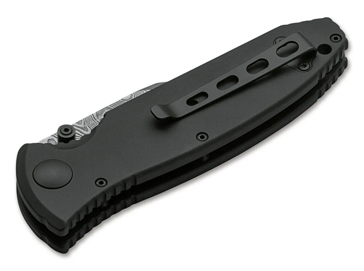 Im Jahr 1947 stellte Mikhail Kalashnikov das von ihm konstruierte Sturmgewehr AK-47 der Roten Armee vor und konnte die Entscheidungsgremien umgehend von seiner Entwicklung überzeugen. Nur zwei Jahre später wurde das inzwischen weltbekannte AK-47 offiziell als „7,62 mm Awtomat Kalasshnikova obraztsa 1947“ in Dienst gestellt. Bis heute richtungsweisend war bereits damals die einfache und zuverlässige Konstruktion als Gasdrucklader mit Drehkopfverschluss, der konsequente Einsatz von schnell und preiswert zu fertigenden Blechprägeteilen und das Festhalten an einer von der Wehrmacht mit dem StG 44 eingeführten Patronenklasse mit einer mittleren Leistung zwischen Maschinenpistolen- und Gewehrmunition. Diese Merkmale führten dazu, dass das System Kalashnikov mit geschätzten 100 Millionen Stück heute weltweit die meistgebaute und nachgebaute Handwaffe der Geschichte ist.Das 1959 zusammen mit der AKM, der überarbeiteten Variante der AK-47, eingeführte Bajonett war nicht weniger revolutionär und prägend für spätere Konstruktionen als das berühmte Sturmgewehr selbst. Das Konzept beruhte auf einem von R. Todorow ursprünglich für Kampfschwimmer entwickeltem Messer. Es markierte die Abkehr von langen Bajonetten, die als reine Stichwaffen genutzt wurden, hin zum kurzen aufpflanzbaren Universalmesser mit isolierter Drahtschere und multifunktionaler Rückensäge.Mikhail Kalashnikov persönlich besuchte 2002 die Böker Manufaktur in Solingen und stellte die Messerlinie Böker Kalashnikov offiziell der Öffentlichkeit vor. Über 70 Jahre nach der Indienststellung des AK-47 präsentieren wir nun ein wirklich außergewöhnliches Sondermodell der Messerlinie und honorieren erneut seine geniale Ingenieursleistung. Das Böker Kalashnikov Bajonett Damast ist mit einer einzigartigen Damastklinge ausgestattet, die aus dem Stahl der Bajonette 6Ch3 und 6Ch4 nach dem GRAU-Index der ehemaligen Sowjetarmee gefertigt wird und mit der Unterschrift von General Kalashnikov verziert ist. Der rostfreie Damast von Chad Nichols besteht aus 80 Lagen und wird von Hand im Muster Virus geschmiedet. Er weist eine ungewöhnlich filigrane Zeichnung auf, die das Ergebnis eines sehr kontrollierten Schmiedevorganges ist. Die Klinge mit der von den Bajonetten übernommenen Pandurenspitze wird mithilfe des Daumenpins geöffnet und von einem stabilen Linerlock verriegelt.Der Griff wird aus einem Block 6061-T6 Aluminium CNC-gefräst und anschließend schwarz hardcoat-anodisiert. Die stabilisierten Einlagen bestehen aus heimischem Hainbuchenholz, erinnern an das Schaftholz des berühmten Sturmgewehrs und bilden zusammen die Form der charakteristischen Lüftungsschlitze des Vorderschafts. Der Farbton Russian Amber Shellac der Originalschäfte wurde dabei genau getroffen. Sie werden ebenfalls per CNC-Technik aus dem Vollen gefräst und per Hand eingelegt. Sämtliche Schrauben und der Clip (Tip-up/r) sind ebenfalls schwarz anodisiert. Handgefertigt in der Böker Messer-Manufaktur Solingen. Auslieferung mit edlem Schwebedisplay, Echtheitszertifikat und individueller Seriennummer.