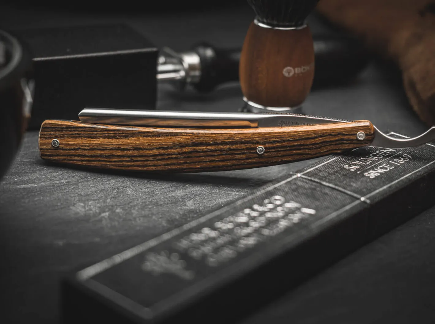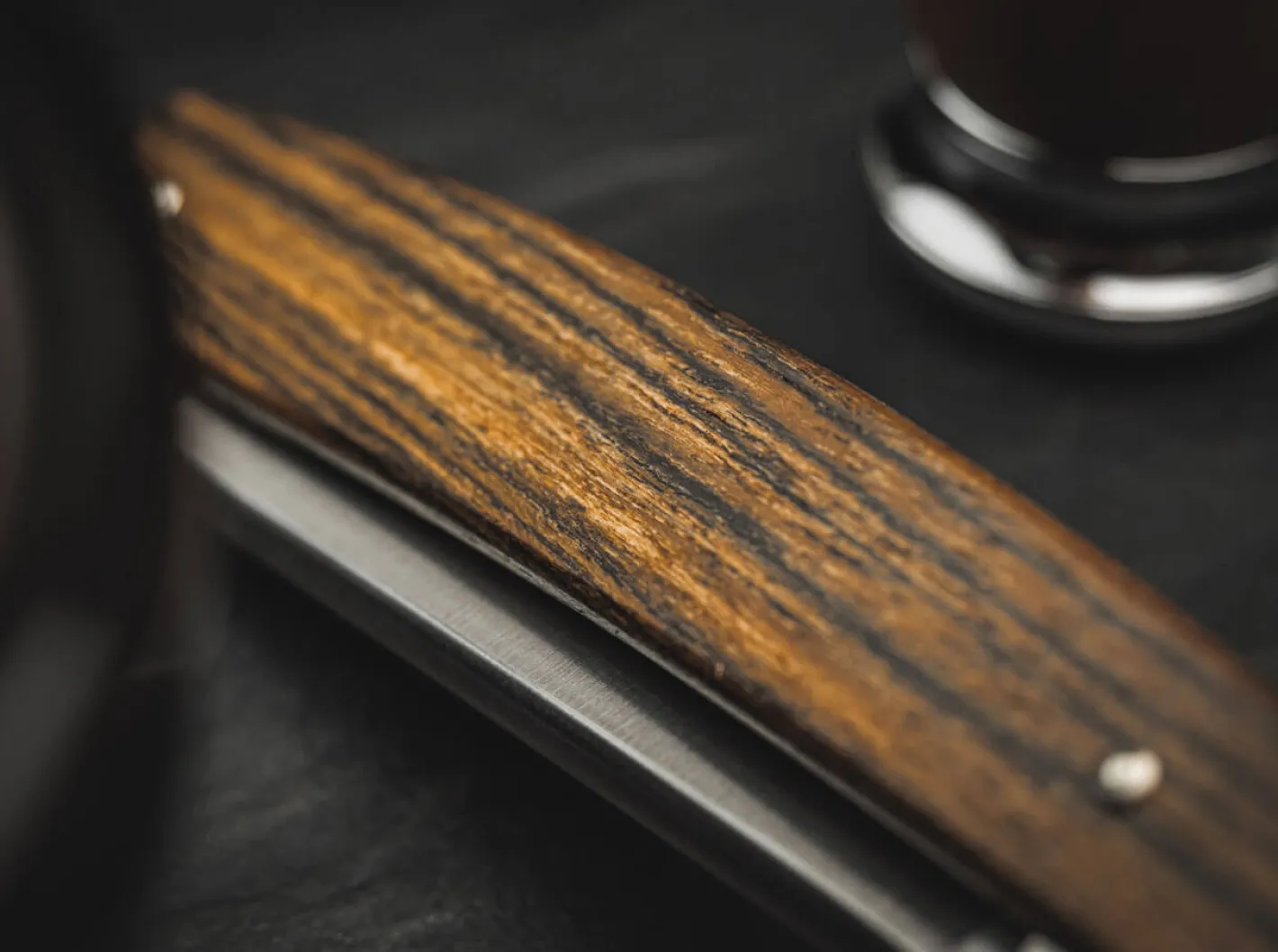 Das mediterrane Böker Locarno LTD mit Spanischem Kopf ist streng limitiert und mit einem fein gemasterten Heft aus edlem Bocoteholz versehen. Die hochwertige Anmutung des Holzheftes wird zudem durch die Verwendung einer dritten Niete unterstrichen. Die 6/8 Zoll breite Klinge dieses außergewöhnlichen Rasiermessers wird extra hohl auf Klang ausgeschliffen und mit einer beidseitigen Serrierung ausgestattet. Mit authentischem Böker Stempel im Klingengang, Echtheitszertifikat und historischer Verpackung. Handgefertigt in der Böker Messer-Manufaktur Solingen.
