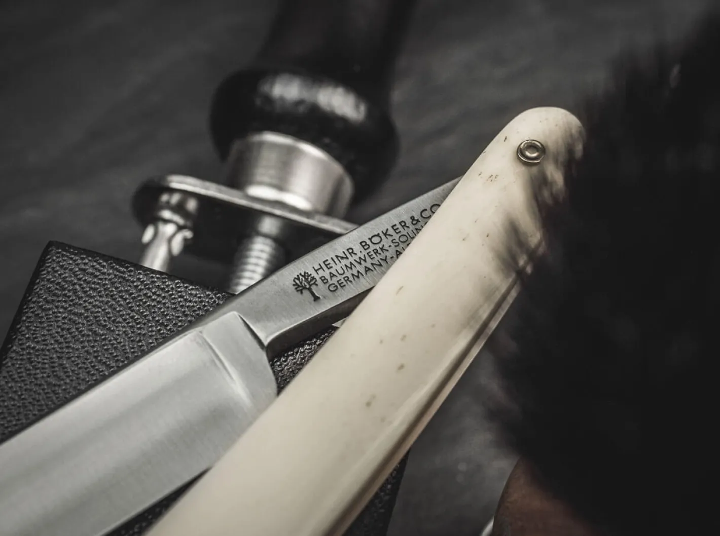 Das außergewöhnliche und streng limitierte Böker Polaris LTD mit Spanischem Kopf in der Größe 4/8 Zoll überzeugt vor allem bei der Rasur der Konturlinien. Die Klinge besteht aus klassischem, nicht rostfreien Kohlenstoffstahl der besonders schnitthaltig ist und wegen seines extrem feinen Gefüges nach wie vor die erste Wahl für hochwertige Rasiermesser ist. Neben der Klinge begeistert auch das griffige Heft aus echtem Knochen, das einen stimmigen Kontrast zum schwarzen Zwischenstück bildet. Mit authentischem Böker Stempel im Klingengang, Echtheitszertifikat und historischer Verpackung. Handgefertigt in der Böker Messer-Manufaktur Solingen.