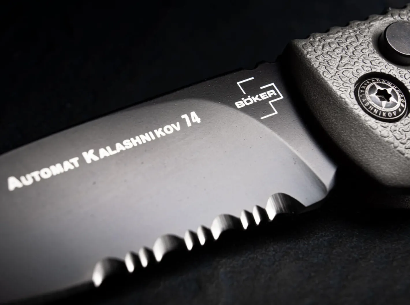 Hinweis: Seit dem 31.10.2024 gilt in Deutschland ein generelles Umgangs- und Besitzverbot von Springmessern aller Art. Es handelt sich ab sofort um verbotene Gegenstände, deren Besitz strafbar ist. Der Besitz von bestimmten Springmessern ist gem. Anlage 2 zum Waffengesetz Abschnitt 1 Nummer 1.4.1 nur noch Personen erlaubt, bei denen ein berechtigtes Interesse besteht, das eine einhändige Nutzung erforderlich macht (etwa aufgrund eines fehlenden Arms oder einer fehlenden bzw. dysfunktionalen Hand), oder der Umgang im Zusammenhang mit der Berufsausübung (z.B. Jagd, Handwerk) oder dem Sport (z.B. Segeln oder Bergsteigen) erfolgt. Gleiches gilt für gewerbliche Händler oder Hersteller solcher Messer. Die Abgabe erfolgt daher nur noch an berechtigte Personen. Bitte prüfen Sie vor der Bestellung, ob ein solches berechtigtes Interesse bei Ihnen vorliegt.Das Böker Plus AKS-74 aus der Kalashnikov-Serie gehört mit Sicherheit zu den beliebtesten Modellen unseres Sortiments und wurde in den vergangenen Jahren in zahlreichen verschiedenen Varianten produziert. Der Griff aus Aluminium erinnert stark an das Bajonett des berühmten Sturmgewehrs, die erhabenen Strukturbahnen bieten zudem in jeder Situation sicheren Halt. Die schwarz PTFE-beschichtete Klinge mit Wellenschliff wird aus rostfreiem D2 gefertigt und kann zusätzlich zum Druckknopf per Schiebesicherung gesichert werden. Mit Fangriemenöse und praktischem Clip (Tip-Up/r).