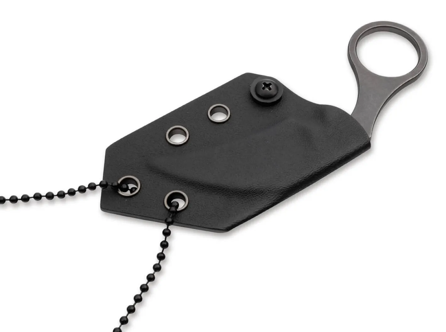 Der aufstrebende deutsche Messerdesigner Simon Frömel ist bei Böker kein Unbekannter. Bereits mit dem Böker Plus Rescue Kiridashi konnte er in der Vergangenheit für Furore sorgen. Sein nächster Coup ist gewiss: das Böker Plus Bad Moon ist ein feststehendes Karambit-Messer mit minimalistischer Anmutung und maximaler Funktionalität. Die Ganzstahlkonstruktion ist mit einer Hawkbill-Klinge aus äußerst schnitthaltigem D2 ausgestattet, deren Linien sich im geschwungenen Griff fortsetzen und dadurch eine sehr effiziente Nutzung garantieren. Garniert ist das gesamte Messer mit einem Dark-Stonewash-Finish. Typisch für diese Messerart ist der große Ring am Griffende, der eine sichere Handlage garantiert und auch als Fangriemenöse verwendet werden kann. Lieferung mit maßgeschneiderter Kydexscheide und Kugelkette zur Verwendung als Neck Knife.