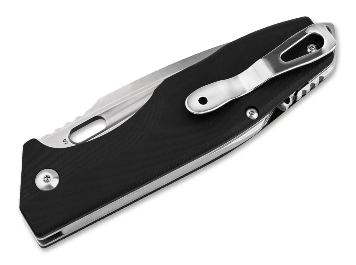 Der Böker Plus Caracal Folder von Boris Manasherov ist seit Erscheinen überaus gefragt und mittlerweile in diversen Versionen erhältlich. Der Caracal Folder 42 verzichtet auf den Linerlock der übrigen Versionen und ist stattdessen mit einem Slipjoint ausgestattet. Das besondere Merkmal ist jedoch der Sicherungsstift, mit dem das Caracal im Bedarfsfall gegen Einklappen gesichert werden kann.Dieser Sicherungsstift sitzt im Griffrücken im Distanzstück und kann, wenn gewünscht, seitlich in die Bohrung im Griff gesetzt werden, wodurch die Klinge fest und sicher steht. Federbelastete Kugeln halten den Stift an beiden Positionen sicher verankert. Die übrige Ausstattung stimmt mit dem bisherigen Caracal überein: Solide Stahlplatinen mit angenehm konturierten G10- Schalen, eine Klinge aus D2 und der umsetzbare Deep-Carry-Clip (Tip-up/l-r) machen einen vertrauten Eindruck. Mit Edelstahl-Endstück mit Fangriemenöse.