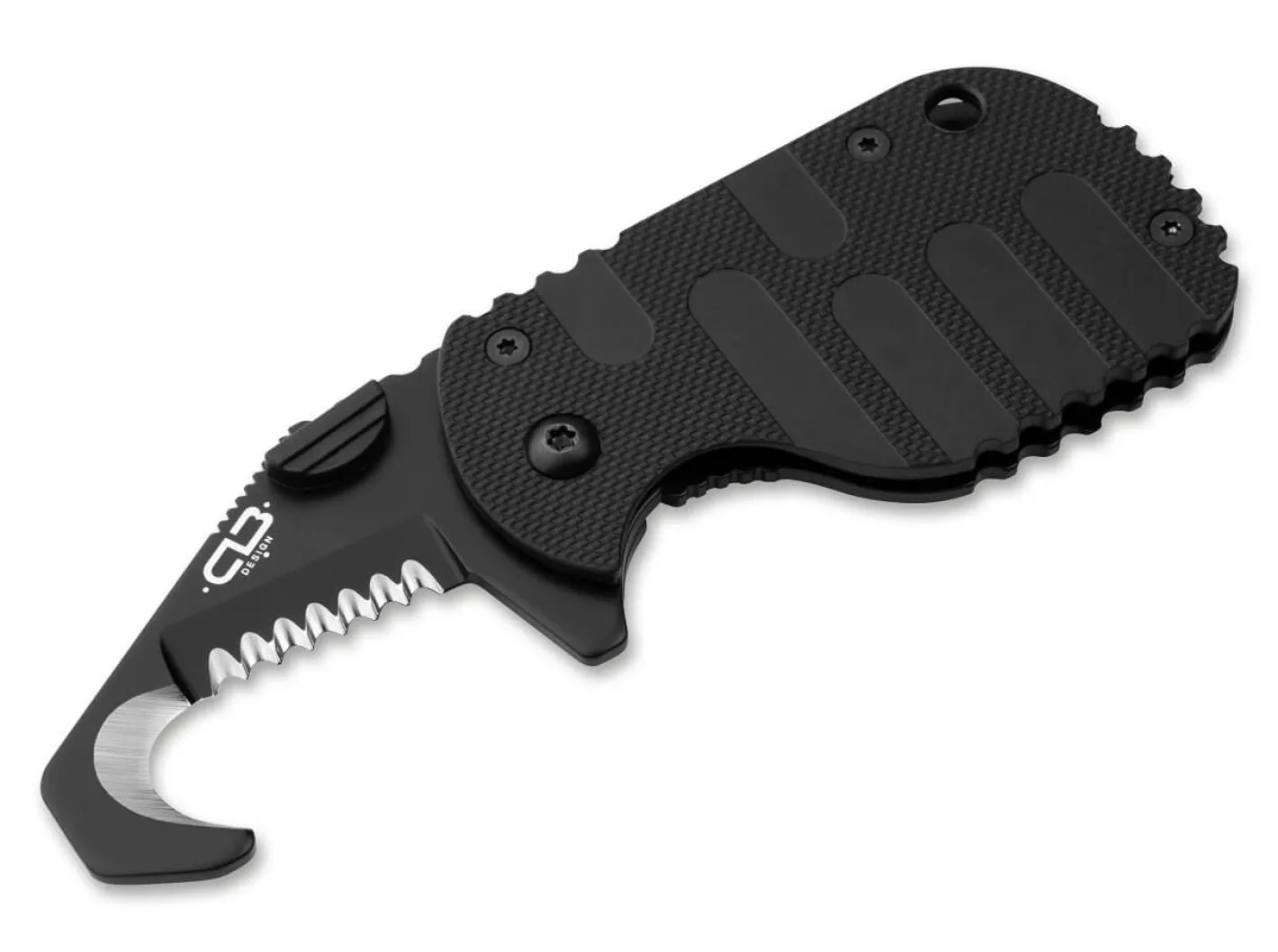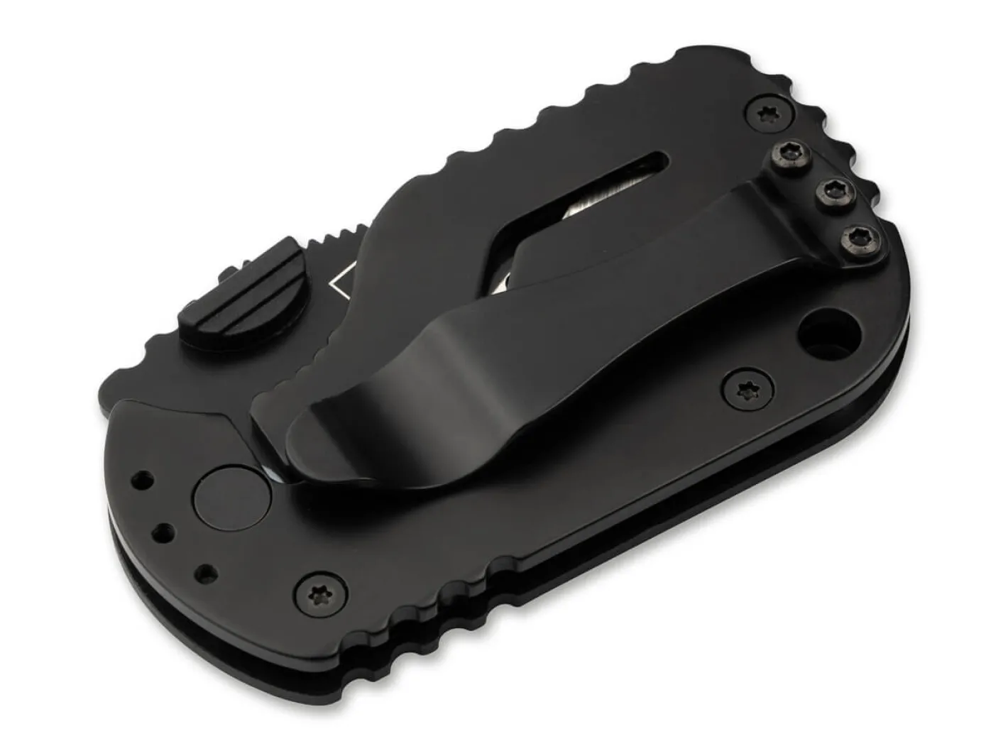 Das ultrakompakte Böker Plus Rescom basiert auf dem beliebten Böker Plus Subcom von Chad Los Banos, ist aber anders als das Ursprungsmodell mit einer vielseitigen Multifunktionsklinge ausgestattet. Die ungebrochene Beliebtheit des handlichen Rettungstools bei professionellen Einsatzkräften und Ersthelfern hat uns nun dazu veranlasst, diesen nützlichen Klassiker unseres Sortiments in einer modernisierten Version neu aufzulegen. Das Böker Plus Rescom 2.0 ist mit einer schwarz beschichteten Rettungsklinge aus D2 ausgestattet, die zahlreiche praktische Funktionen vereint und im Notfall Leben retten kann. Sie wird mithilfe des beidseitigen Daumenpins geöffnet und von der zwei Millimeter starken Stahlplatine des Framelocks sicher arretiert. Ein ausgeprägter Handschutz erhöht den Griffkomfort und verhindert ein Abrutschen in die Klinge. Die strukturierte Griffschale aus schwarzem Zytel ist mit dreidimensionalen Fräsungen versehen und liegt dank dieser Oberflächenstruktur, der ergonomischen Formgebung und Riffelungen im Bereich der Daumenauflage auch bei Nässe stets sicher in der Hand. Mit Fangriemenöse und umsetzbarem Clip (Tip-up/Tip-down).