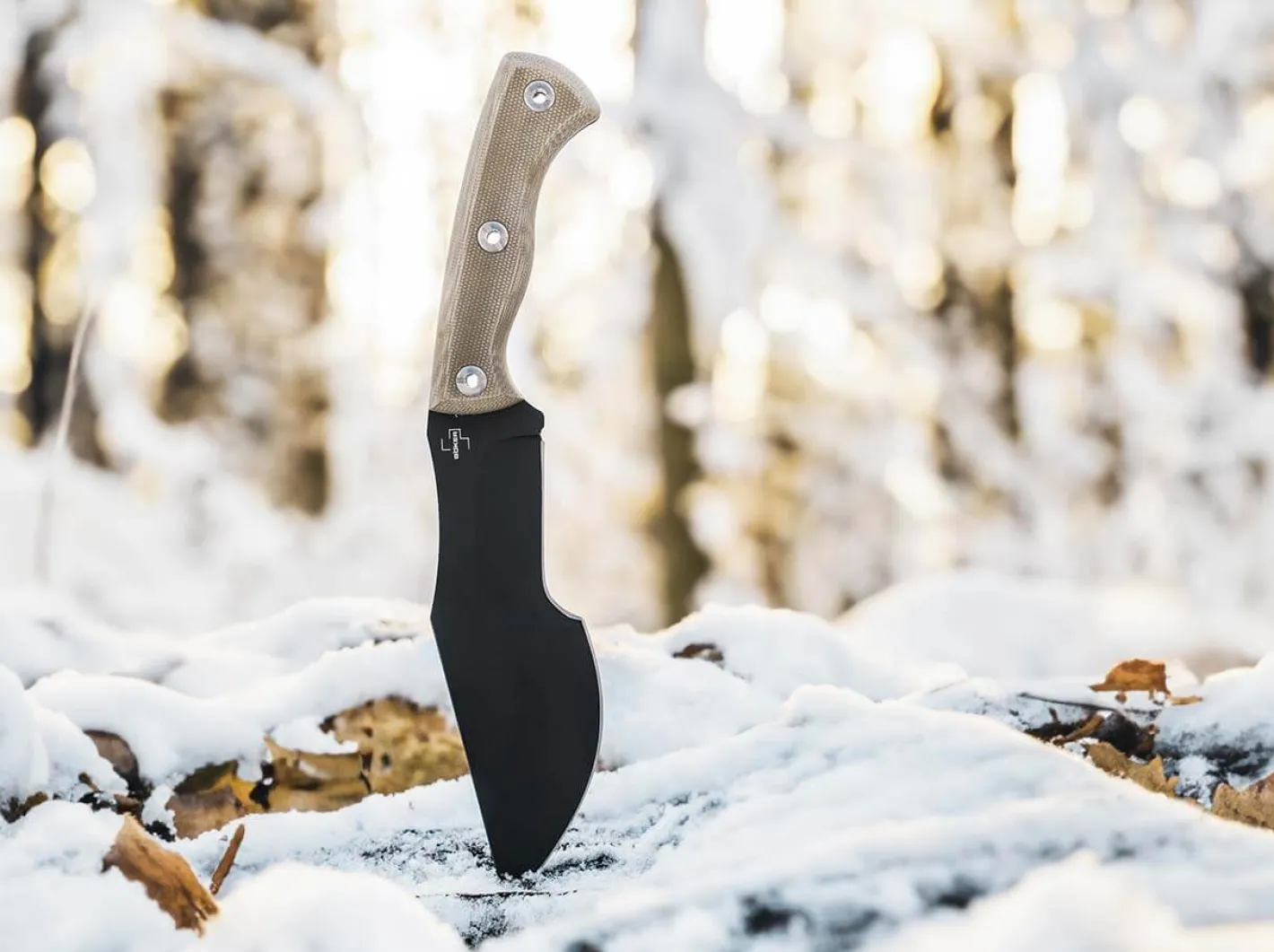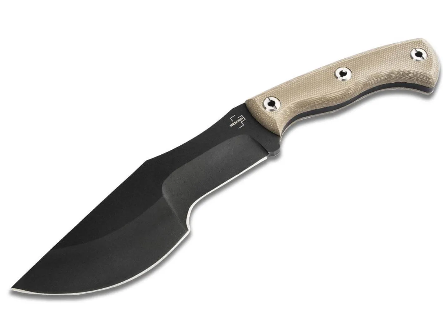 Der von Dave Wenger entworfene Böker Plus Mini Tracker entwickelte sich schnell zum Liebling der Camping- und Bushcraft Szene, da das stabile Outdoormesser mit seiner wuchtigen Klinge aus 1095er Kohlenstoffstahl und korrosionsresistenter Pulverbeschichtung bis heute auf ganzer Linie überzeugt. Aus dessen Windschatten zieht jetzt der ausgewachsene Böker Plus Tracker 2.0 heraus. Gleiche Materialien, gleiche Ausstattung, unvergleichliche Performance! Die kopflastige Klinge des wuchtigen Survival-Messers ist mit zwei verschiedenen Schliffebenen versehen und eignet sich ideal zum Hacken, Schneiden, Schaben, Graben und Hebeln. Die optimale Ausgewogenheit von Klingenstärke und Länge sowie die ergonomische Form der fein texturierten Griffschalen aus Micarta ermöglichen ein ermüdungsfreies Arbeiten. Der Griff des Bushcraft-Messers mit massivem Vollerl ist mit drei imposanten Hohlnieten für höchste Stabilität fest verschraubt. Lieferung mit Gürteladapter und passgenauer Kydexscheide.