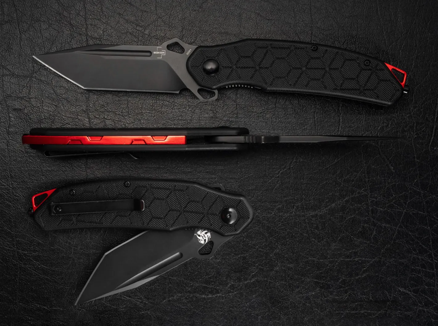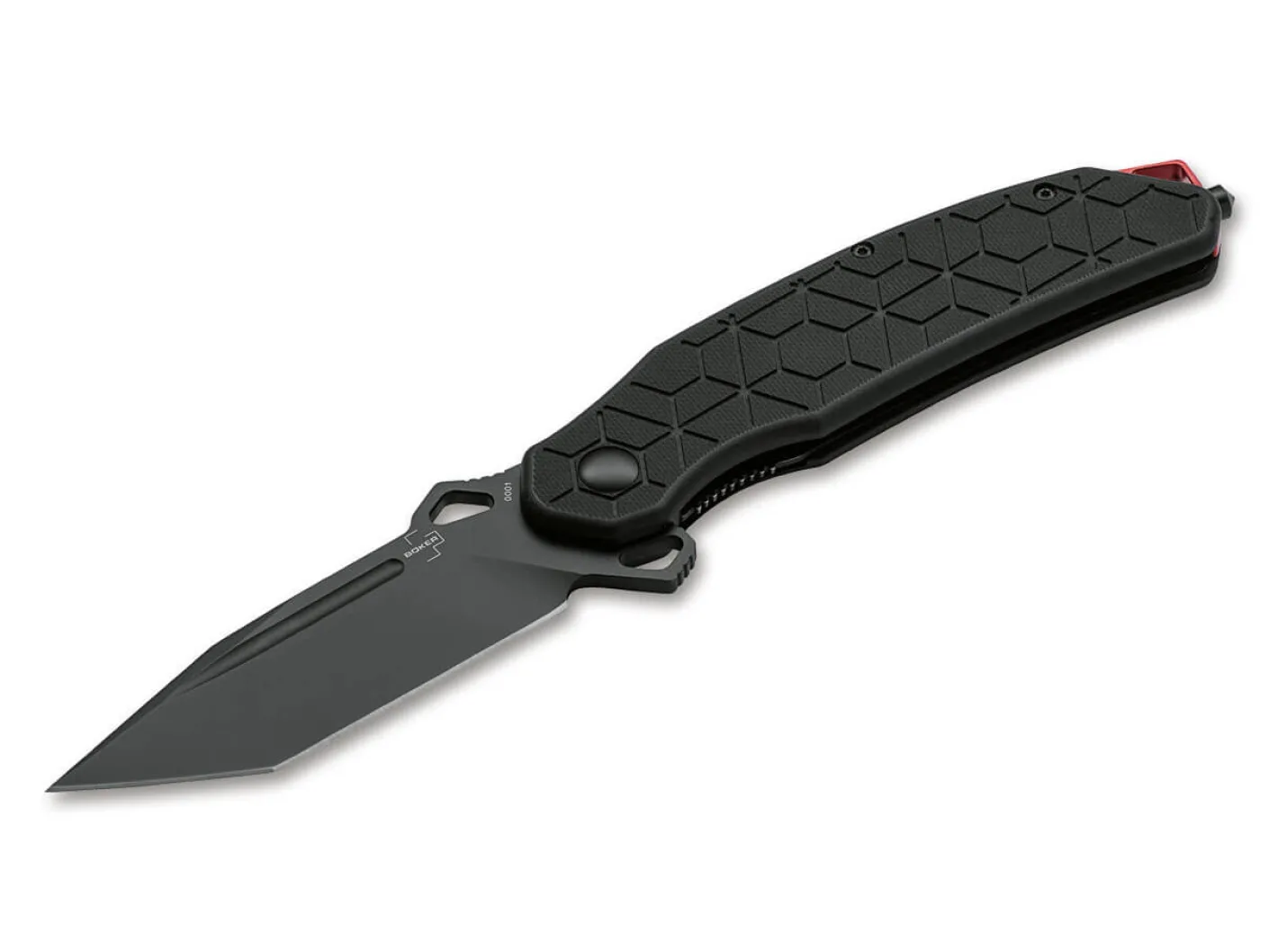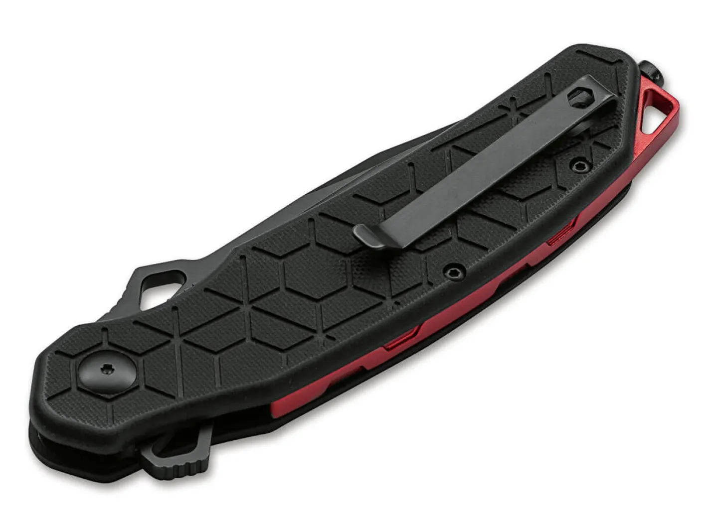 Das robuste Böker Plus Yokai überzeugt als zuverlässiges Einsatzmesser mit einer aggressiven Tanto-Klinge und einem rutschfesten Griff. Das taktische Taschenmesser wurde von Alessandra De Santis entworfen, die als Mitarbeiterin von Hydra Armaments auch unter dem Namen Hydra Design bekannt ist. Das Familienunternehmen aus dem Norden Italiens ist auf Waffenzubehör und taktische Ausrüstung spezialisiert. Die erfahrene Messer-Enthusiastin sammelt, testet und vergleicht seit ihrem 14. Lebensjahr unzählige Messer und ist Autorin von zahlreichen Berichten und Artikeln, die in verschiedensten Fachmagazinen veröffentlicht wurden. Die ehemalige Industriechemikerin kann dabei auf ein breites Fachwissen über Stähle und Materialien zurückgreifen. Sie ist zudem eine Liebhaberin von Schusswaffen und begeisterte Filipino Martial Arts Kämpferin.Ihre modernen Entwürfe vereinen ihre Erfahrungen aus all diesen Bereichen und machen das Yokai zu einem absoluten Ausnahmemesser. Die modifizierte Tanto-Klinge aus D2 ist mit einer widerstandsfähigen schwarzen Beschichtung versehen ist, wird per Flipper geöffnet und von einem stabilen Linerlock zuverlässig gesichert. Die in einem modernen Wabenmuster texturierten Griffschalen liegen auch bei schlechten Witterungsbedingten optimal in der Hand, zudem sorgen die geriffelte Daumenrampe und die ergonomische Zeigefingermulde für zusätzlichen Grip. Der rote Spacer aus Aluminium sorgt für einen farblichen Akzent. Mit Fangriemenöse, Glasbrecher und praktischem Clip (tip-up/r). Lieferung in einem hochwertigen Nylon-Etui zur Aufbewahrung.