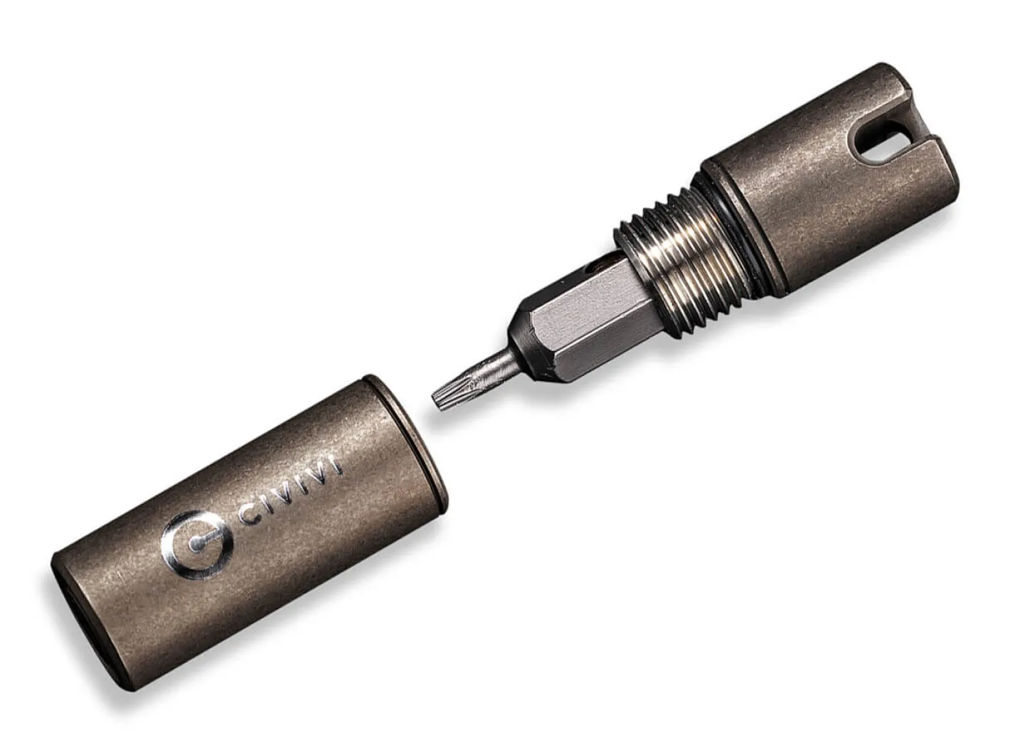 Das kompakte Torx Kit (T6 & T8) überzeugt mit einem zylindrischen Aufbewahrungsbehälter aus bronzefarbenem Titan und kann bequem am Schlüsselbund getragen werden. Mit Magnetverschluss und 5 Ersatzdichtringen.