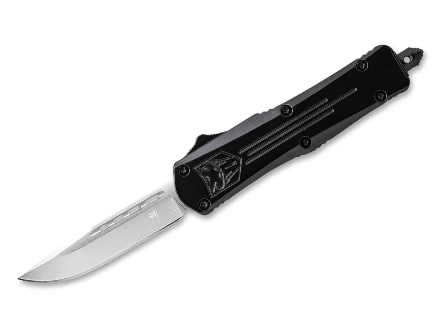 Achtung!Dieser Artikel ist ausschließlich für den Export in zugelassene Märkte bestimmt. Es handelt sich um einen verbotenen Gegenstand gemäß deutschem Waffengesetz. Der Vertrieb in und die Einfuhr nach Deutschland sowie jeglicher Umgang mit diesem Produkt in Deutschland ist verboten. Die Abgabe erfolgt nur an berechtigte Personen, jede Bestellung wird manuell geprüft! Bestellungen aus nicht zugelassenen Märkten werden ohne Rückmeldung gelöscht. Aufgrund der besonderen Rechtslage müssen wir diesen Artikel getrennt von anderen Artikeln versenden, wodurch höhere Portokosten entstehen können.Das grundsolide CobraTec Large FS-3 OTF Black überzeugt mit seiner Klinge aus D2 und dem strukturierten Griff aus Aluminium. Die Klinge kommt via Knopfdruck automatisch aus dem vorderen Griffstück (out the front) heraus. Mit Nylon Etui, Glasbrecher und Clip (Tip-down/r).