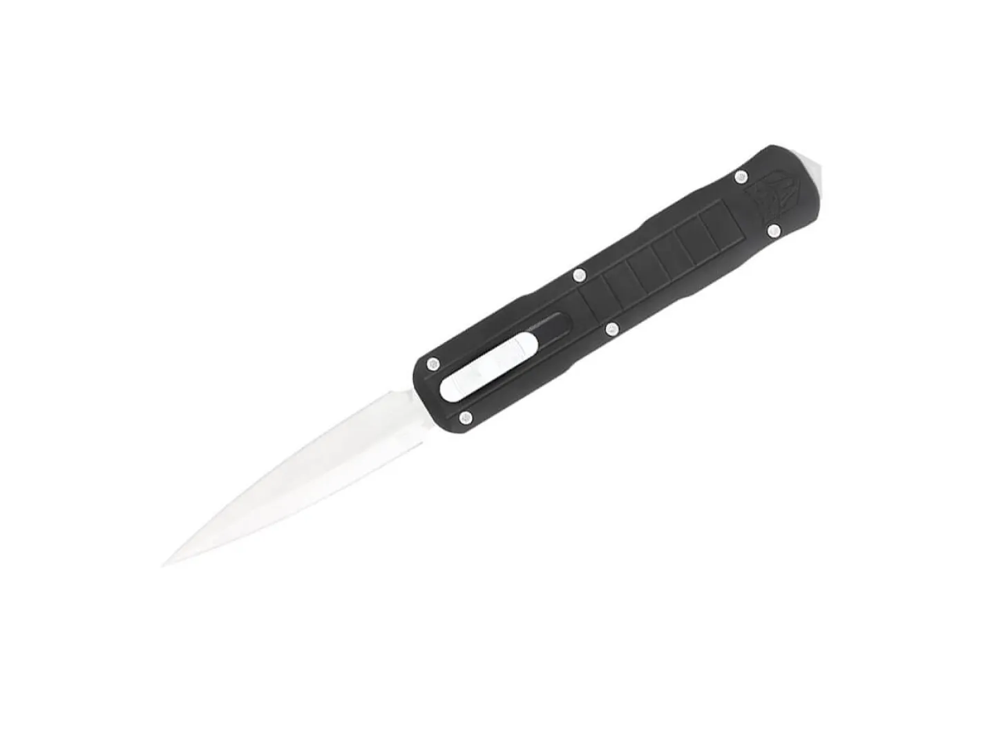 Achtung!Dieser Artikel ist ausschließlich für den Export in zugelassene Märkte bestimmt. Es handelt sich um einen verbotenen Gegenstand gemäß deutschem Waffengesetz. Der Vertrieb in und die Einfuhr nach Deutschland sowie jeglicher Umgang mit diesem Produkt in Deutschland ist verboten. Die Abgabe erfolgt nur an berechtigte Personen, jede Bestellung wird manuell geprüft! Bestellungen aus nicht zugelassenen Märkten werden ohne Rückmeldung gelöscht. Aufgrund der besonderen Rechtslage müssen wir diesen Artikel getrennt von anderen Artikeln versenden, wodurch höhere Portokosten entstehen können. Einst galten die Raptoren als effiziente Jäger unter den Dinosauriern, deren Erfolgsrezept aus Schnelligkeit, List und der gefürchteten Sichelkralle am Fuß bestand. Cobratec überträgt diese prägenden Eigenschaften ins gleichnamige OTF-Messer und stattet es mit einer beidseitig abgezogenen Dolch-Klinge aus D2 aus, die instinktiv per Knopfdruck öffnet und schließt. Sicheren Halt verspricht der schwarze Griff aus hochfestem Aluminium. Mit Glasbrecher und Tip-Up Clip (r).