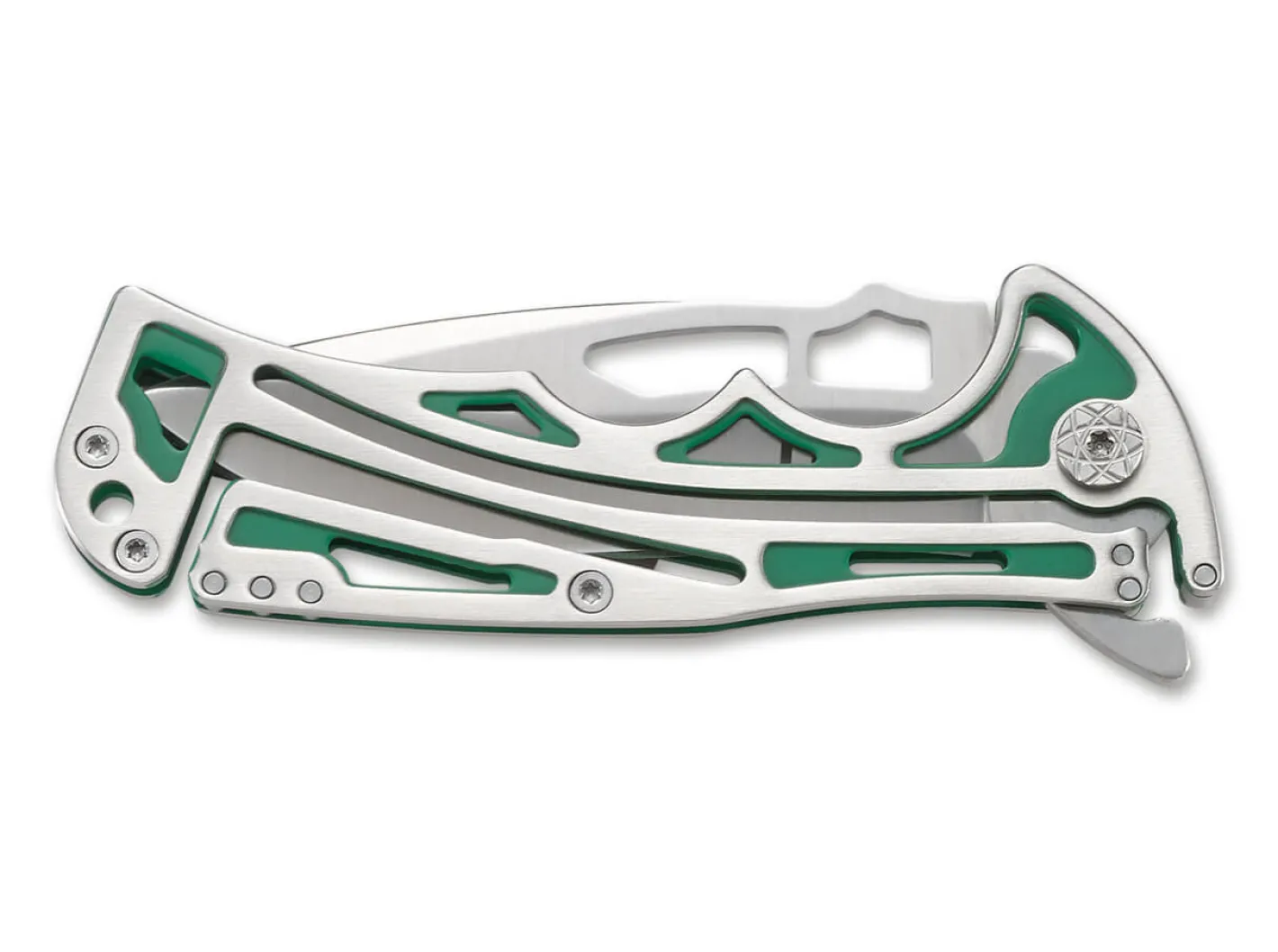 Brian Tighe provoziert mit dem avantgardistischen Design des CRKT NIRK Tighe II und stellt die Messerwelt auf den Kopf. Durch die zahlreichen Aussparungen an der kugelgelagerten 8Cr14Mov Klinge und dem Griff wird das Gewicht reduziert, ohne dabei an Funktionalität einzubüßen. Das Messer öffnet wahlweise per Flipper oder Daumenöffnung und wird mit dem patentierten Klecker Lock verriegelt. Die grünen Farbakzente am ergonomischen Edelstahlgriff untermalen den modernen Anspruch des Messers und sorgen für einen unverwechselbaren Look. Mit Fangriemenöse und Clip (Tip-up/r).