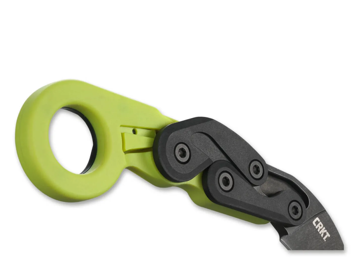 Eine ganz neue Dimension von Klappmesser stellt das CRKT Provoke Zap Green von Joe Caswell dar, dessen Kinematic genannter Mechanismus, mit dem keines anderen Taschenmessers vergleichbar ist. Die auf zwei beweglichen Armen gelagerte Hawkbill-Klinge dreht sich nicht klassisch um eine Achse, sondern wird vom Griff parallel nach vorne herausgeschwenkt und verriegelt. Die Verriegelung des Kerambits wird mit dem in Griff eingelassenen Hebel wieder gelöst. Die Bedienung ist so unkompliziert und intuitiv, dass stets ein sicheres und schnelles Handling gewährleistet ist. Die Griffelemente werden aus grünem Grivory gefertigt, während die schwarz beschichtete Klinge aus 4116 besteht und beeindruckende 5,3 Millimeter stark ist. Der runde Clip trägt im Gebrauch des Messers nicht auf, lässt sich jedoch mit leichtem Fingerdruck aus seiner Parkposition holen, um das Messer wegzustecken. Das einzigartige Konzept des Provoke beweist anschaulich, dass auch im Bereich der Klappmesser noch grundlegende Innovationen möglich sind.
