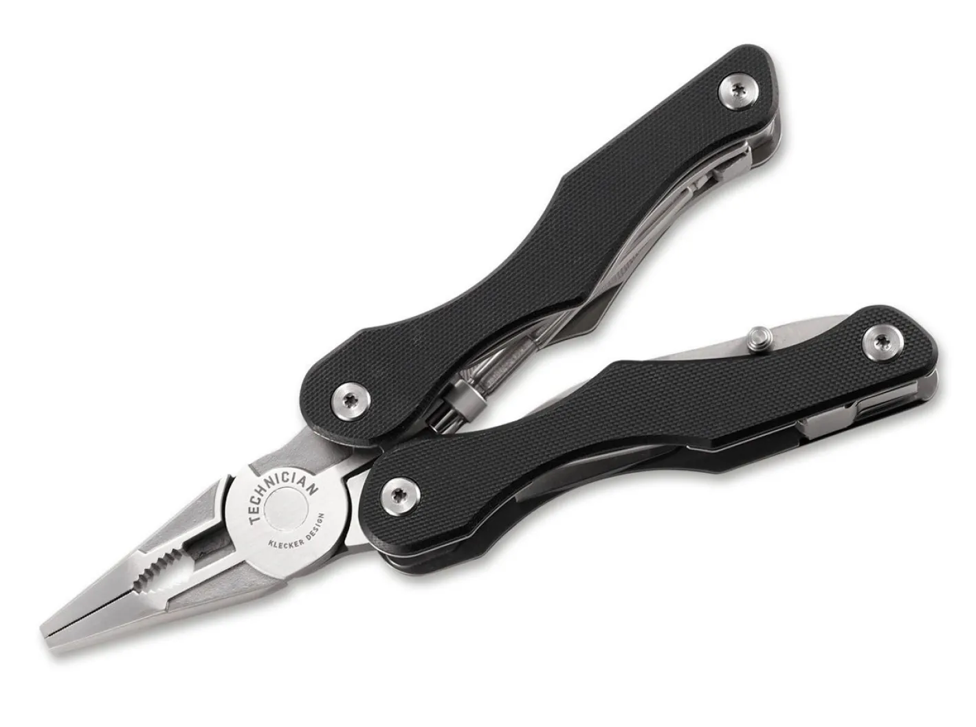 Das CRKT Technician wurde von Glenn Klecker speziell für den Autoschrauber entworfen. Hierbei hatte er die wirklich anspruchsvollen und kritischen Nutzer in Gedanken. Als eines der ersten Tools verfügt es über einen teleskopisch ausziehbaren Magnetheber. Fühlerlehre und Dichtungsschaber runden die spezialisierte Werkzeugauswahl ab. Weitere Funktionen: Spitzzange mit Gripper, Drahtschneider und Abisolierer, Bithalter, zweiseitige Feile mit Gurtschneider und Flaschenöffner, Taschenmesserklinge (Slipjoint). Der Stahlkörper ist für bessere Griffigkeit zusätzlich mit Schalen aus G10 versehen. Klingenstahl 5Cr15MoV. Inklusive robustem Cordura-Gürteletui.