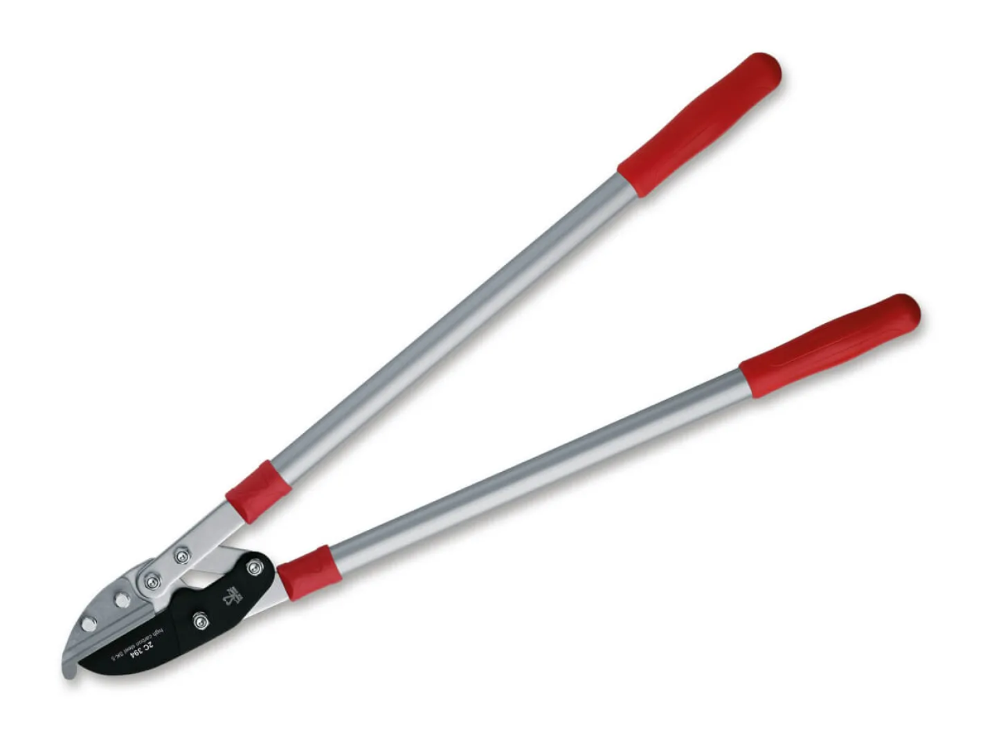 Die Due Cigni Astschere schneidet hartes und trockenes Holz bis zu einem Durchmesser von 4cm. Dank der Schneide aus SK-5 Kohlenstoffstahl wird das Schnittbild sauber ohne das übrige Astwerk zu verletzen. Der clevere Hebelmechanismus verringert den Kraftaufwand und sorgt für ein schonendes Arbeiten. Die leichten Aluminium-Hebelarme mit rutschfesten Griffen garantieren jederzeit sicheren Halt und volle Kontrolle selbst bei schwierigen Arbeiten über Kopf.