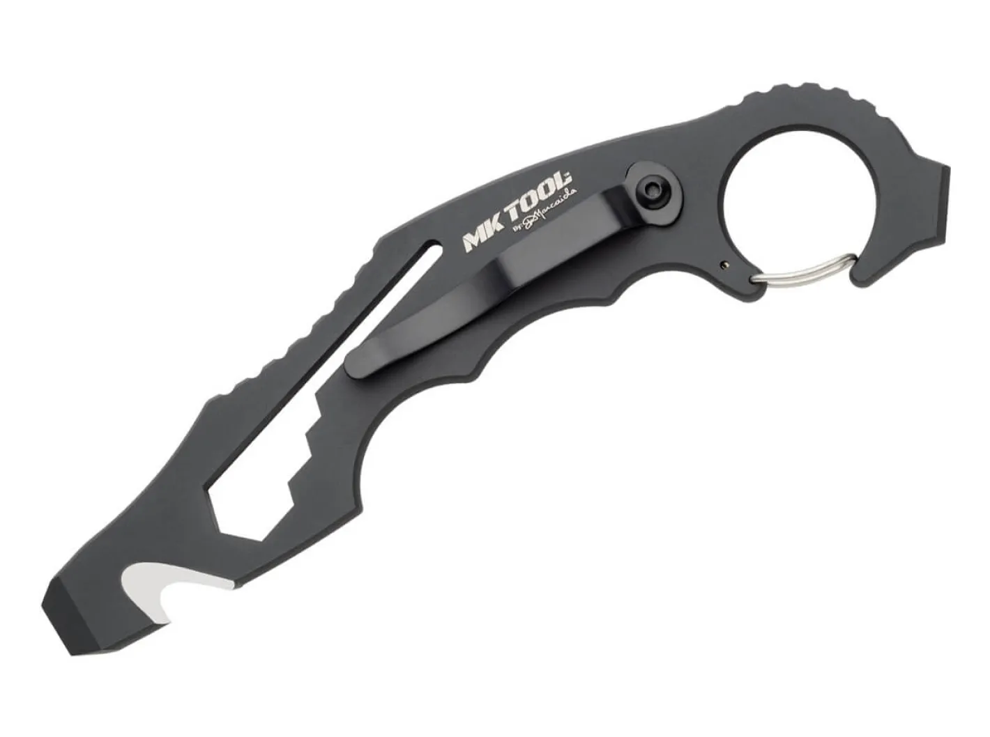 Die feststehende Version des Rettungstools von Doug Marcaida, mit spezialisierter Einsatzklinge mit Meißelspitze, Gurtschneider, integrierten Sechskantschlüsseln und Kreuzschlitzschraubendreher. Mit umsetzbarem Clip (Tip-Down/l-r). Alternativ kann zum Tragen die im Lieferumfang enthaltene Kydexscheide genutzt werden.