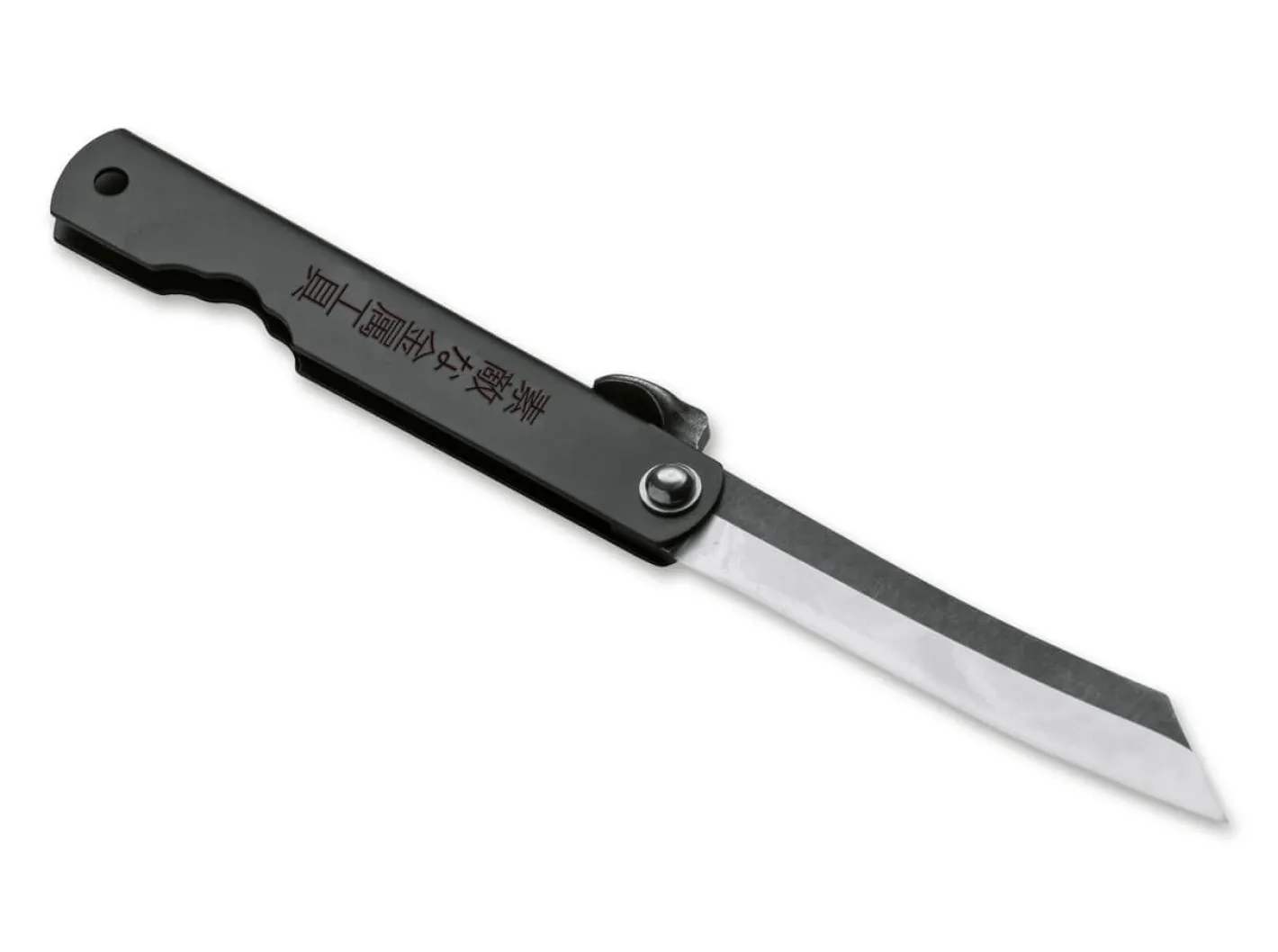 Der gefaltete Griff des Higo Kyoso wird aus dunklem Edelstahl gefertigt und ist mit einer dezenten Fangriemenöse ausgestattet. Die teilweise schwarz beschichtete Klinge besteht aus 7CR und ist mit einem leichten Stonewash-Finish versehen.