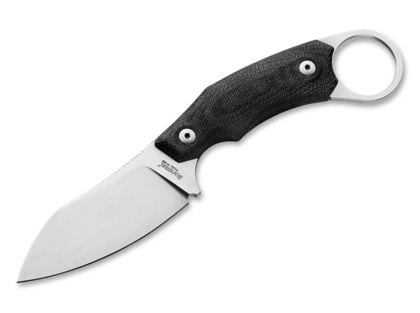 Das von Tommaso Rumici entworfene H1 lehnt sich an die ursprünglich aus Südostasien stammenden Karambits an und punktet mit einem hohen Nutzwert für jegliche Outdooraktivitäten. Das handliche Messer ist mit einer Wharncliffe Klinge aus M390 sowie einem balligen Griff aus schwarzem G10 ausgestattet. Der für Karambits typische große Ring am Griffende kann als Fangriemenöse verwendet werden. Lieferung mit hochwertiger Lederscheide.