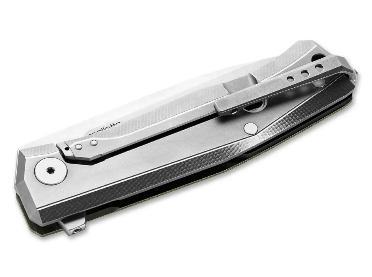 Das minimalistische LionSteel Myto ist ein absolutes Hightech-Taschenmesser, das Eleganz und Alltagstauglichkeit gekonnt miteinander vereint. Die einzigartige Titan-Konstruktion nach dem Design von Molletta bietet maximale Stabilität bei gleichzeitig unübertroffener Ästhetik. Das moderne Gentlemanmesser punktet mit einer kugelgelagerten Klinge aus M390 und einer rutschsicheren Griffschale aus olivgrünem Micarta. Die satinierte Klinge öffnet per Flipper und wird von einem verstärkten Framelock gesichert. Mit Fangriemenöse, dreidimensional gefrästem Titan-Clip (Tip-up/r) und Glasbrecher aus Wolframkarbid. Flipper und Glasbrecher lassen sich mithilfe des beiliegenden Werkzeugs zudem unkompliziert demontieren.