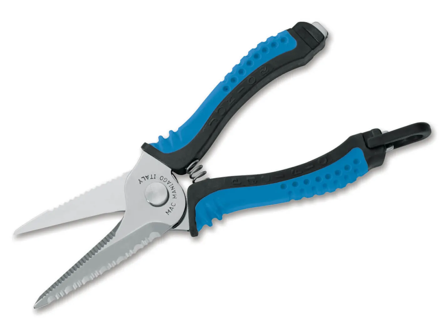 Die Taucherschere PJ (Pacific Junior) von MAC wird aus 4116 gefertigt, ist mit einem rutschfestem Griff aus TPE ausgestattet und verfügt zusätzlich über einen Wellenschliff. Lieferung mit ABS-Scheide mit Gummibändern für Beine oder Arme.