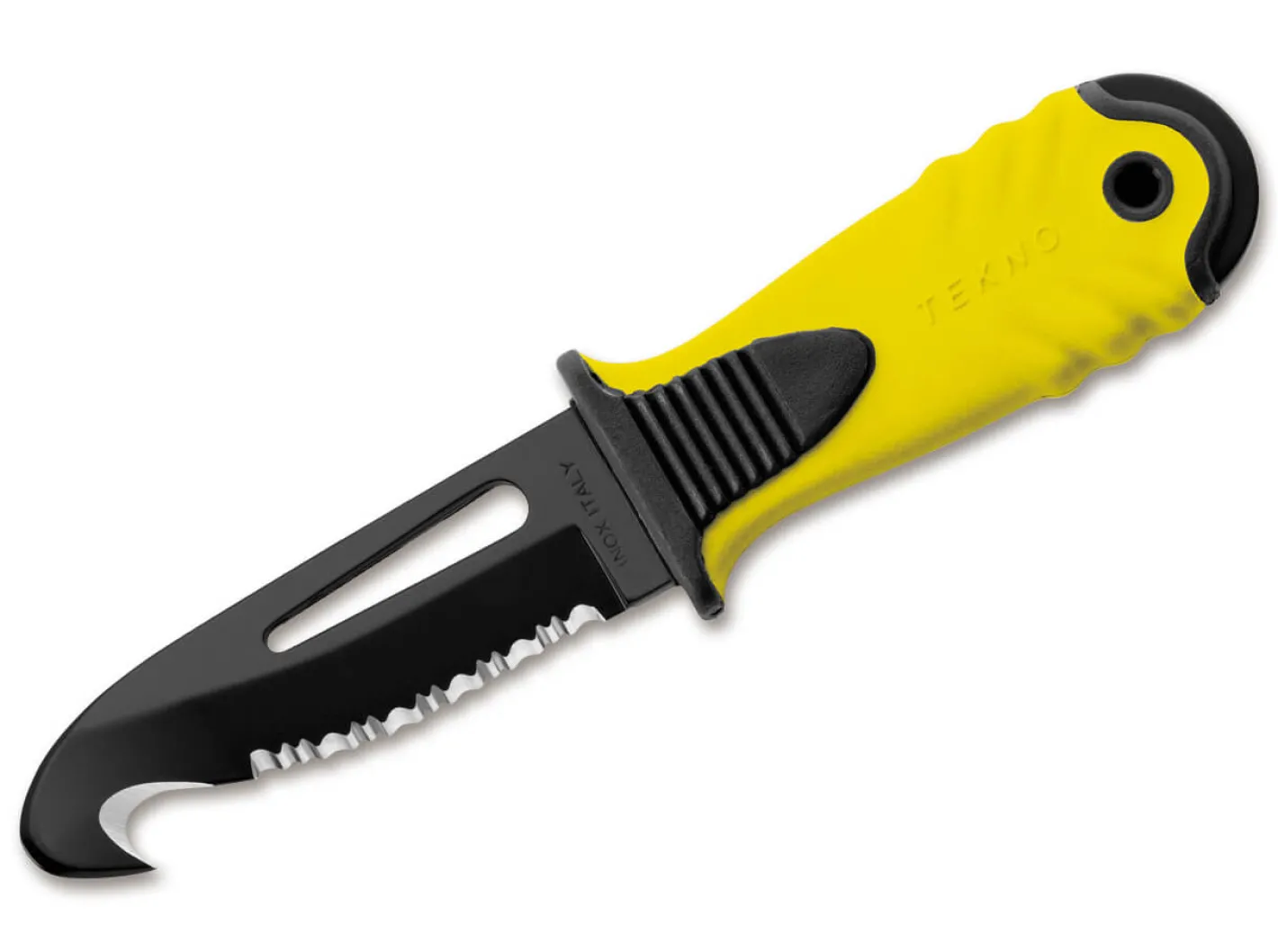Das Tekno Rescue X von MAC kommt mit gummierter Griff mit vorstehendem Erl als Schlagstück im Griffende. Die Idroglider-beschichtete Klinge aus 4116 ist mit einem Wellenschliff, Kapphaken und einer abgerundeter Spitze versehen. Mit beidseitig tragbarer, sicher rastender Kunststoffscheide mit Zusatzsicherung und Beingurten.