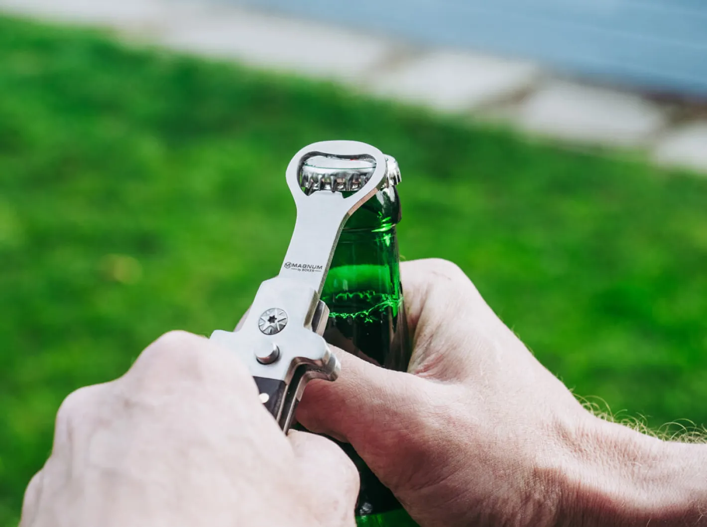 Der Magnum Auto Wingman Flaschenöffner ist mit Sicherheit eine der lässigsten Varianten, um einen Kronkorken zu entfernen. Auf Knopfdruck springt der stabile Kapselheber aus dem angenehm geformten Griff, der mit Schalen aus dunklem Pakkaholz versehen ist. Ohne Clip.
