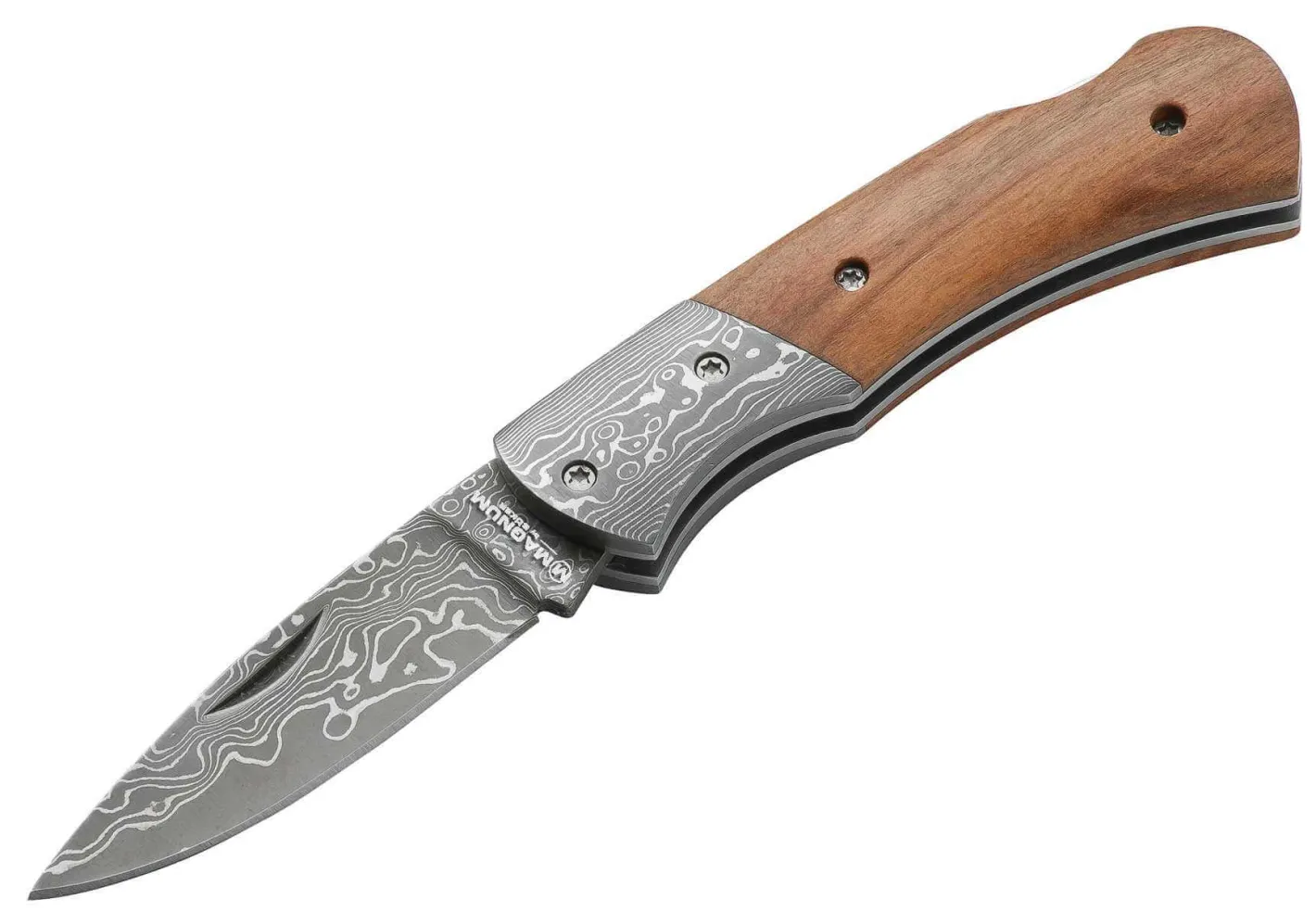 Ein edles und hochwertiges Messer, um das man Sie beneiden wird. Die Klinge ist aus echtem Damast mit 71 Lagen gefertigt. Die Backen werden ebenfalls aus dem kostbaren Material produziert. Bei der Griffbeschalung wurde ebenfalls nicht gespart, hier kommt hochwertiges Olivenholz zum Einsatz. Der Lockback verhindert ein versehentliches Einklappen der Klinge. Ohne Clip.