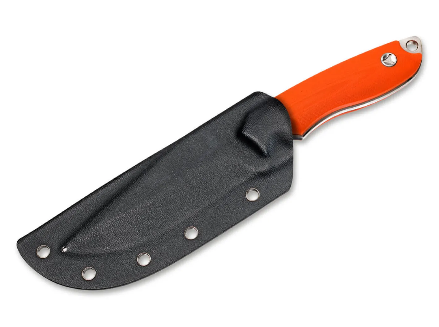 Das Magnum EFD eignet sich gleichermaßen für Rettungsteams als auch für Betroffene einer Search-and-Rescue-Situation. Die orangefarbenen G10-Griffschalen mit großzügig dimensionierten Schrauben und die robuste, dabei aber rasiermesserscharfe Klinge sind kompromisslos auf den Outdoor-Einsatz abgestimmt. Die Kanten des ringsum überstehenden Fulltangs sind sorgfältig abgerundet und ermöglichen so ein ausdauerndes Arbeiten ohne Blasenbildung. Das Emergency Fixed Blade überzeugt mit einer überdurchschnittlichen Verarbeitung in allen Details. Die Klinge wird aus zähem, dabei aber schnitthaltigem rostfreiem 440A-Edelstahl gefertigt. Mit Fangriemenöse, robuster Kydexscheide und praktischem Gürteladapter.