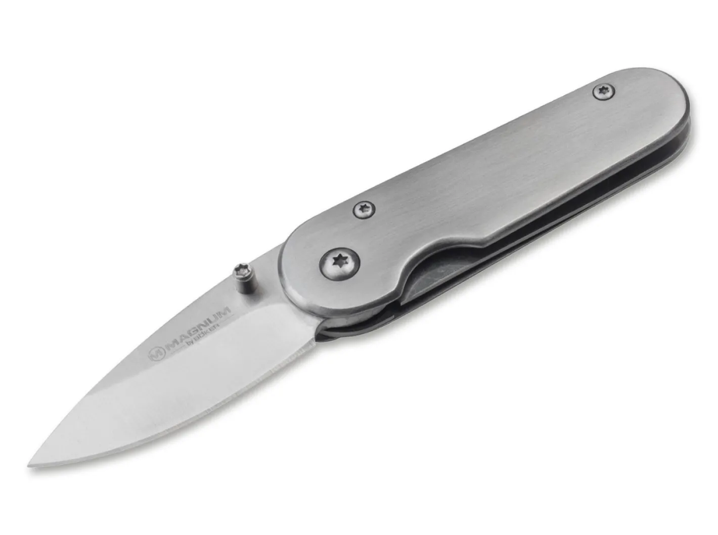 Die Magnum Taschenmesser-Serie Handwerksmeister wendet sich vorrangig an den Handwerker, der zur Arbeit ein solides und zuverlässiges, aber auch preislich interessantes Messer sucht, das ihm bei seiner Arbeit eine echte Hilfe und ein unersetzliches Werkzeug ist. Die schnitthaltigen Messer besitzen eine korrosionsbeständige Klinge aus rostfreiem 440A-Edelstahl. Das robuste Auftreten, die Zuverlässigkeit und nicht zuletzt das ausgezeichnete Preis-Leistungs-Verhältnis machen die Serie als Alleskönner für den beruflichen Alltag zu einer ausgezeichneten Wahl für die Blaumanntasche oder den Werkzeugkasten.Das Ganzstahlmesser besticht durch sein schlankes und schlichtes, elegantes Auftreten. Der Griff aus Edelstahl trägt kaum auf und bietet so nicht nur hervorragenden Tragekomfort, sondern auch ein hohes Maß an Stabilität. Die einhändig zu bedienende Klinge arretiert per Linerlock. Mit praktischem Deep-Carry-Clip (Tip-down/r).
