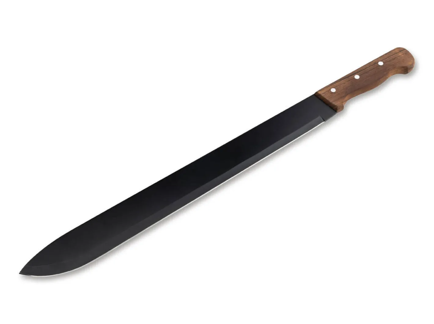 Wenn der Alltag wie Regen abtropft, die klare Luft den Körper mit Abenteuer durchflutet und das Rauschen des Waldes die Seele mit Stille erfüllt, ist das nächste Naturerlebnis bereits ganz nah. Um den Ausflug ins Grüne perfekt zu machen, hält Böker mit der Magnum Havy Duty Machete Big eine beeindruckende Machete für begeisterte Bushcrafter und Naturfreunde bereit. Die wuchtige Klinge aus 420 ist mit einer schwarzen Beschichtung versehen, die dem feststehenden Messer einen taktischen Hauch gibt. Die kopflastige Bauweise der Machete ermöglicht ein ermüdungsfreies Arbeiten, so dass Tätigkeiten wie Hacken oder Schneiden leicht von der Hand gehen. Sicheren Halt verspricht der ergonomische Griff aus Wengeholz, der mit drei dekorativen Nieten versehen ist. Lieferung mit passgenauer Nylonscheide.