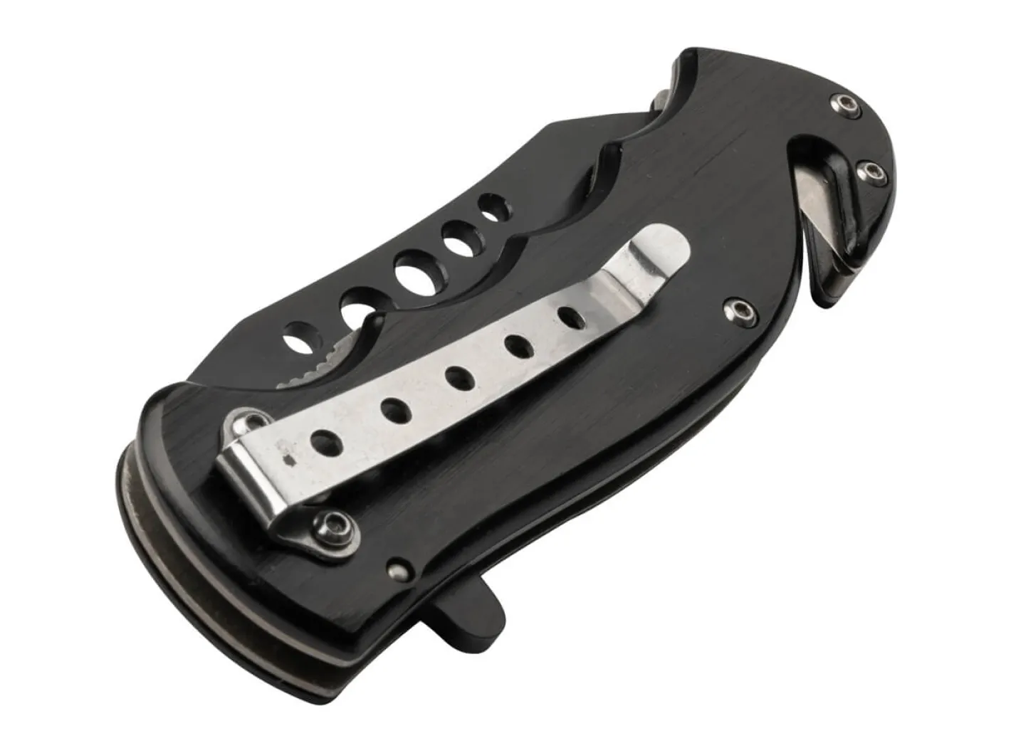 Das Magnum Special Forces ist ein funktionales Rettungsmesser, das den weltbekannten Elite-Einheiten der amerikanischen Streitkräfte gewidmet ist. Der leichtgewichtige Griff aus schwarz beschichtetem Aluminium trägt ein Emblem mit dem Wappen der Special Forces. Die rostfreie Klinge aus 440A öffnet federunterstützt per Flipper und wird von einem stabilen Linerlock zuverlässig arretiert. Die Bohrungen verleihen der Klinge eine eigene Note und reduzieren zudem das Gewicht. Am Griffende befinden sich ein Glasbrecher und ein Gurtschneider, die das Messer für jede Notfallausrüstung prädestinieren. Mit praktischem Deep-Carry-Clip (Tip-down).