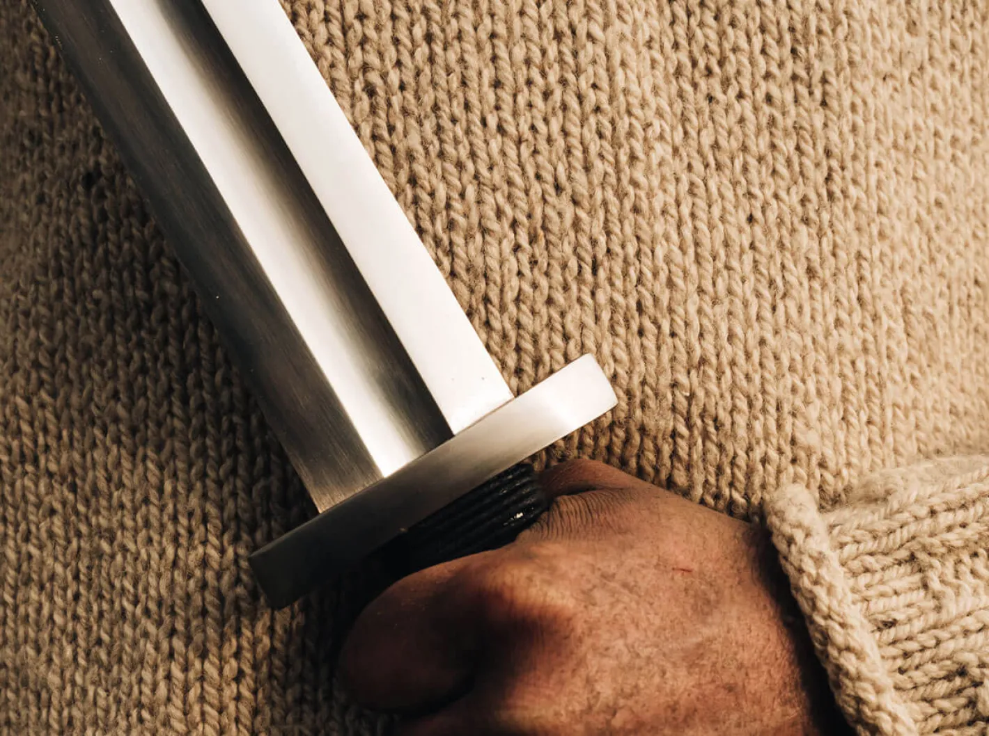 Die gehärtete und abgezogene Klinge dieses einsatztauglichen Schwertes ist flexibel wie sein historisches Vorbild und wird mit viel Liebe zum Detail mit hochwertigem Griff und Edelstahlbeschlägen versehen, so dass das Schwert durch seine Ausgewogenheit und die äußerst edle Anmutung begeistert. Die Authentizität dieser edlen Blankwaffe fasziniert auf Anhieb, und die hochwertige Verarbeitung eines jeden Exemplares macht das Mittelalter wieder lebendig. Ausgeliefert wird das Viking’s Sword mit sauber angepassten authentischen Scheide mit Edelstahlbeschlag. Man muss ein Schwert nicht unbedingt aus einem Stein ziehen, um sich wie ein König zu fühlen! Dieser schöne Nachbau eines mittelalterlichen Schwertes basiert auf authentischen Fundstücken aus dem frühen Mittelalter. Die angeschärfte Klinge aus 1060er Kohlenstoffstahl trägt eine lange, breite Hohlkehle, die dem Schwert seine Authentizität verleiht. Der mit Kordel umwickelte Griff und die Edelstahlbeschläge geben dem Schwert seine ausgezeichnete Balance.